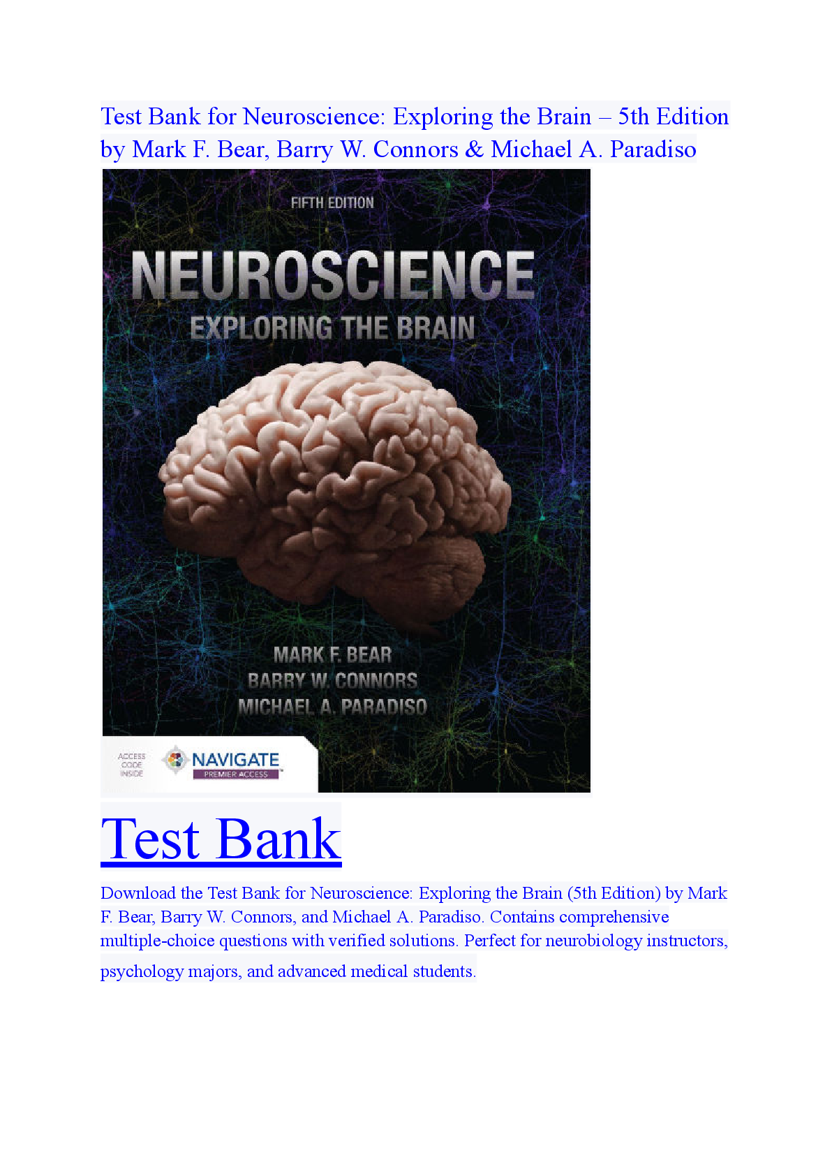 Neuroscience > TEST BANKS > Test Bank- Mark F. Bear, Barry W. Connors, Michael A. Paradiso – Neuroscience-exploring the brain-2024 (All)