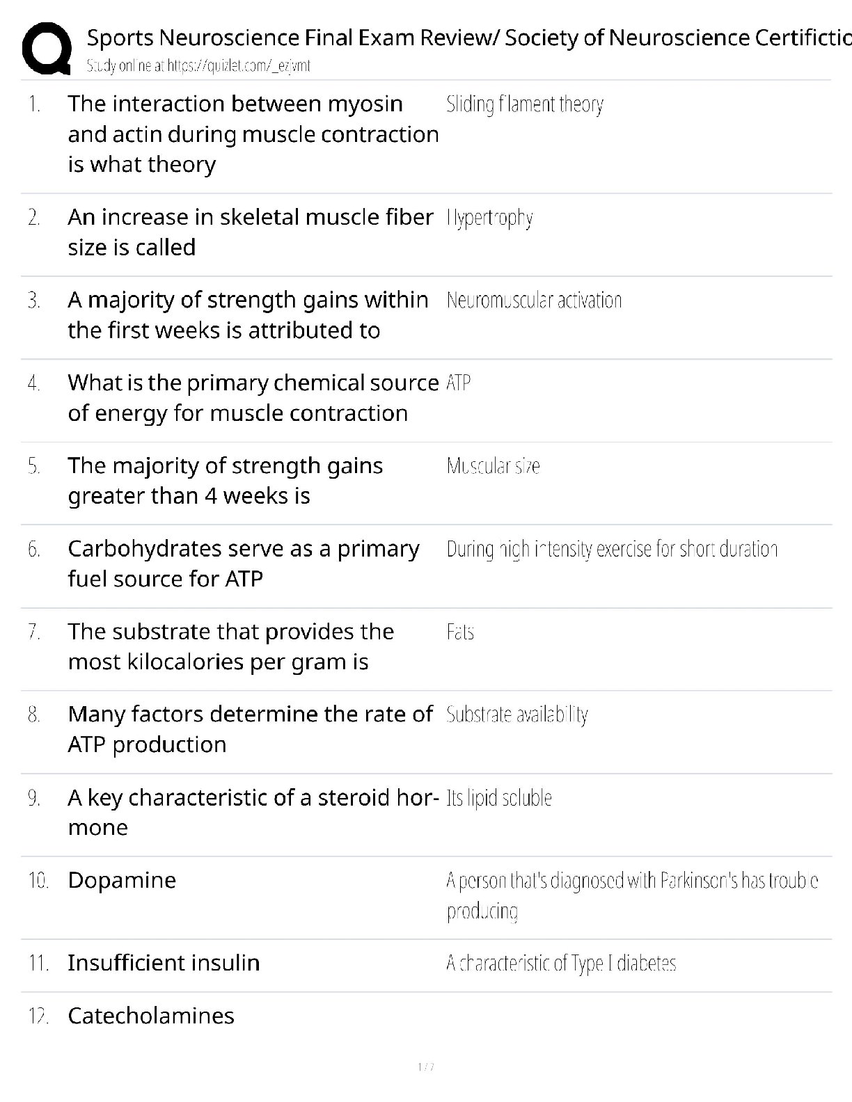 Neuroscience > QUESTIONS & ANSWERS > Sports Neuroscience Final Exam / Neuroscience Certification Review / 2026 Update / Practice Test & Study Guide (All)