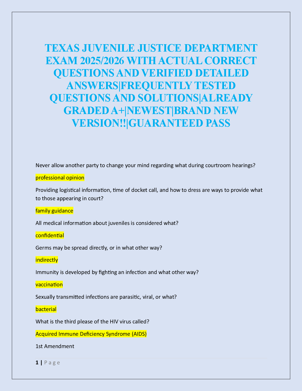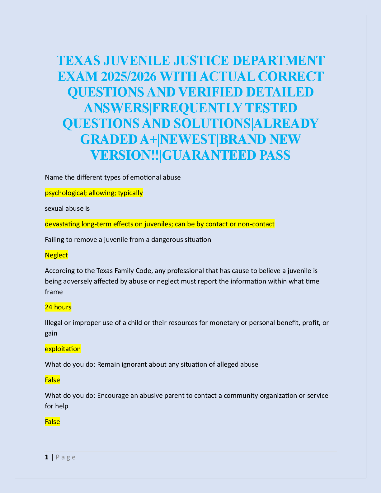 Criminal Justice > EXAMs > TEXAS JUVENILE JUSTICE DEPARTMENT EXAM (All)