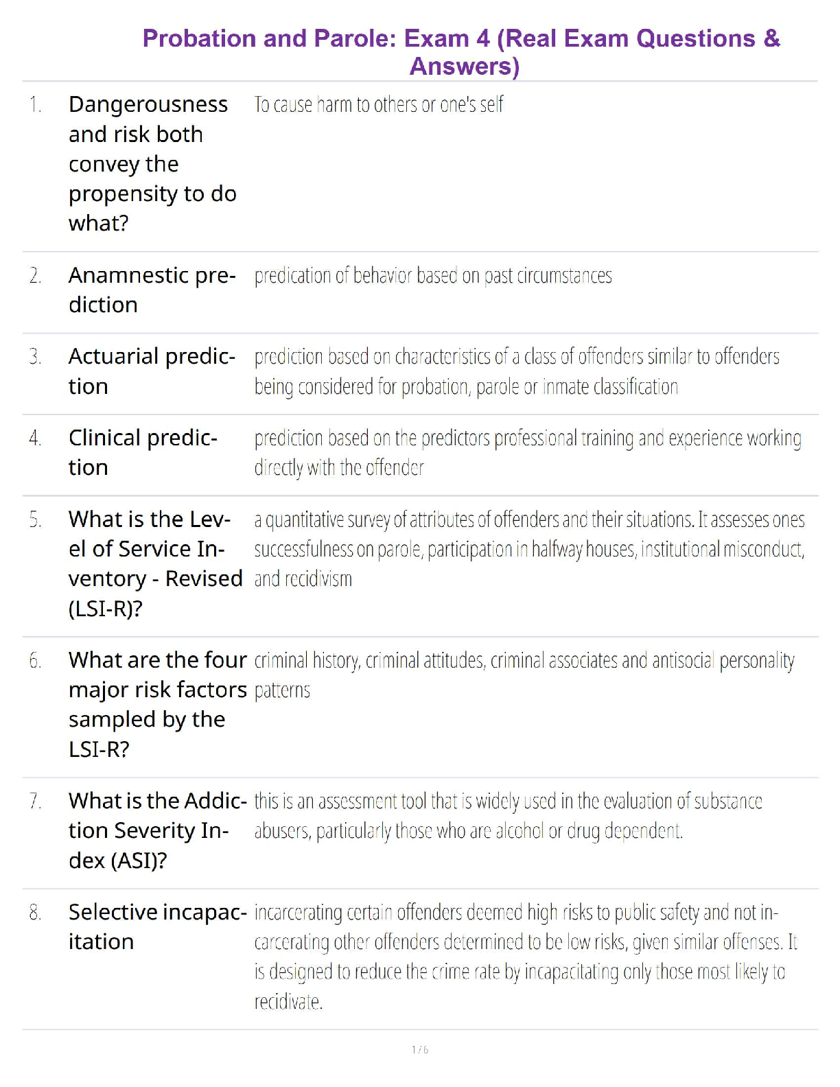 Criminal Justice > EXAMs > Probation and Parole: Exam 4 (Real Exam Questions & Answers) (All)