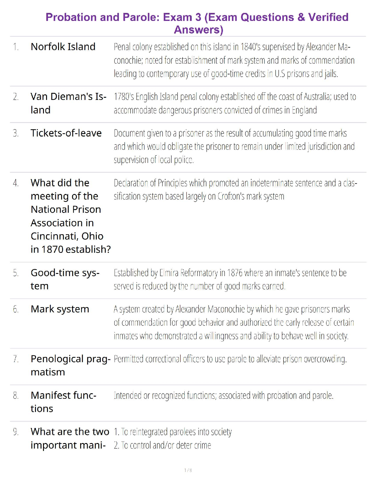 Criminal Justice > EXAMs > Probation and Parole: Exam 3 (Real Exam Questions & Verified Answers) (All)