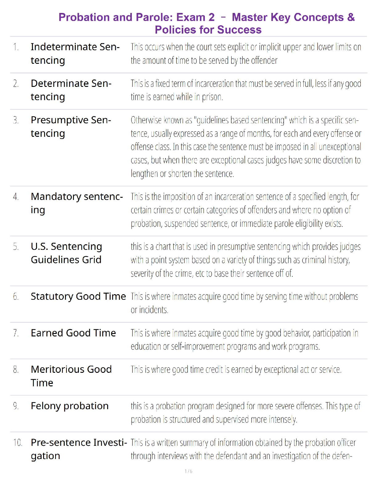 Criminal Justice > EXAMs > Probation and Parole: Exam 2 – Master Key Concepts & Policies for Success (All)
