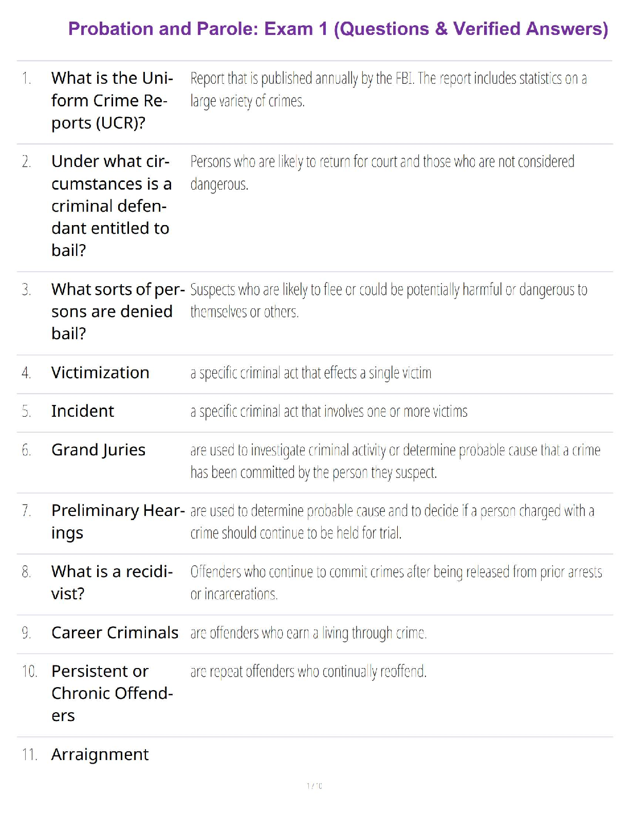 Criminal Justice > EXAMs > Probation and Parole: Exam 1 (Real Questions & Verified Answers) (All)