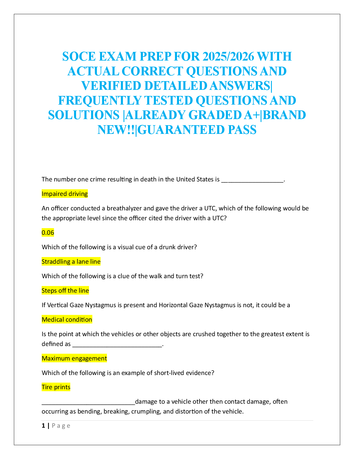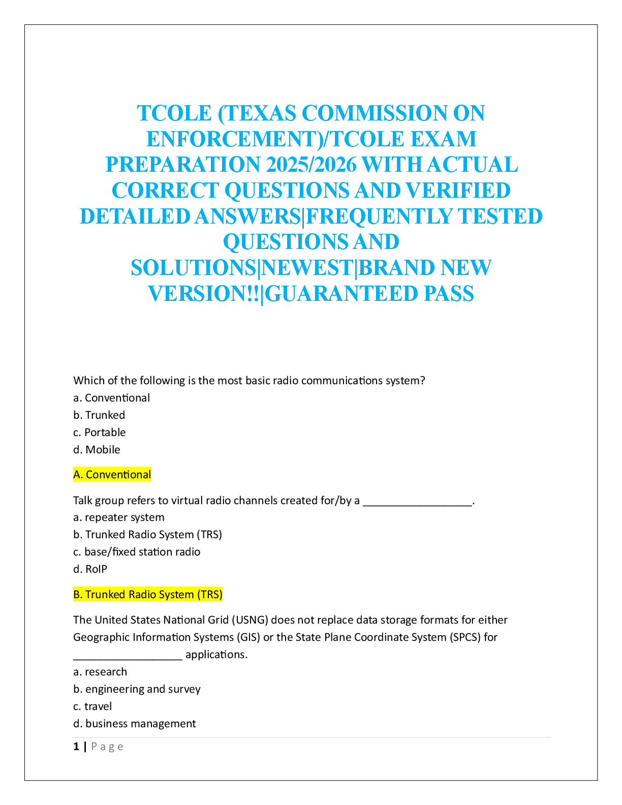 Criminal Justice > EXAMs > TCOLE (TEXAS COMMISSION ON ENFORCEMENT)/TCOLE EXAM PREPARATION (All)