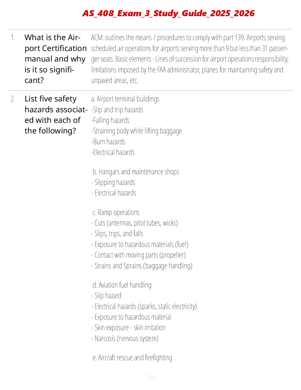 AERM Assembly & Rigging Unit 1 Test Guide Questions And Answers
