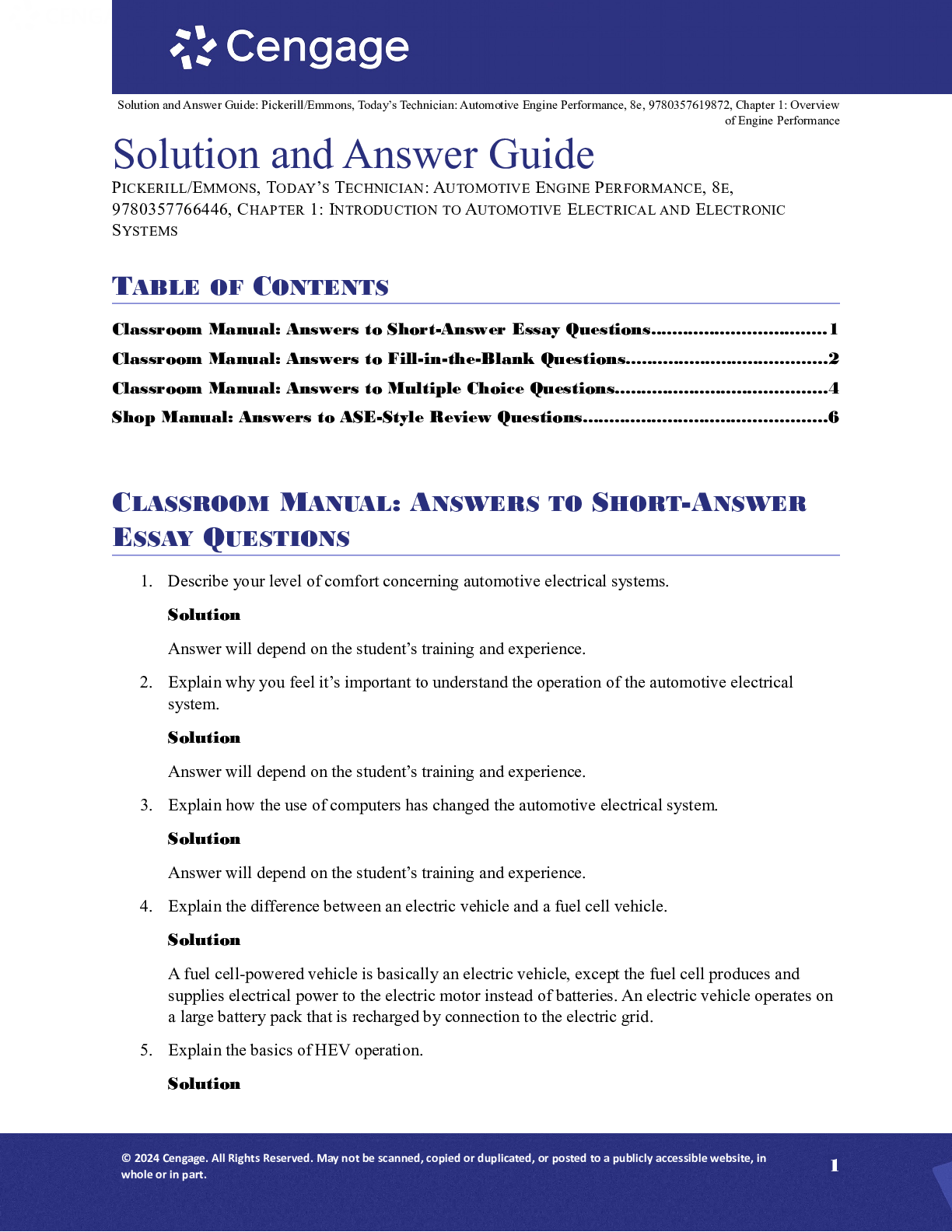 Aeronautical Enginnering > SOLUTIONS MANUAL > Solutions Manual for Today's Technician Automotive Engine Performance, Classroom and Shop Manuals 8th Edition By Ken Pickerill (All Chapters, 100% Original Verified, A+ Grade) (All)