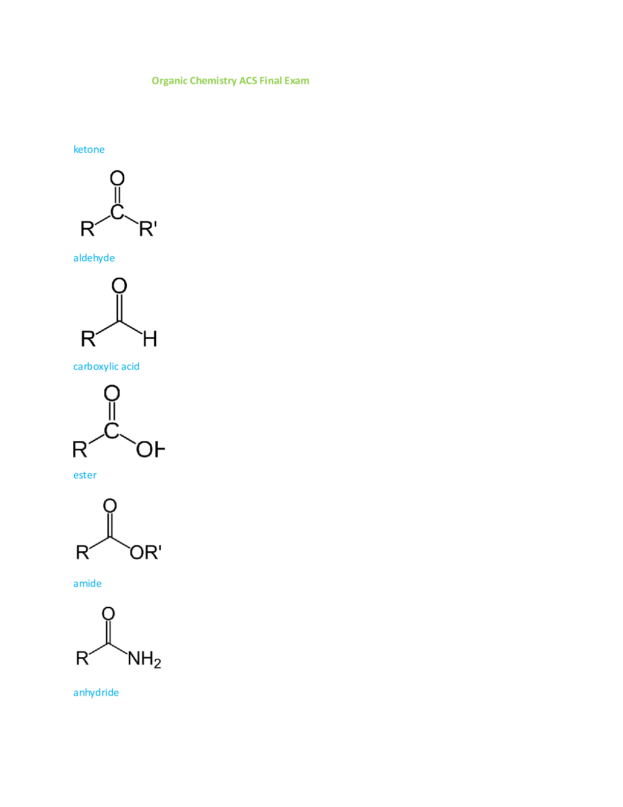 Organic Chemistry > EXAM > Organic Chemistry ACS Exams_ACS Organic Final Practice Exam. 70 Questions (All)