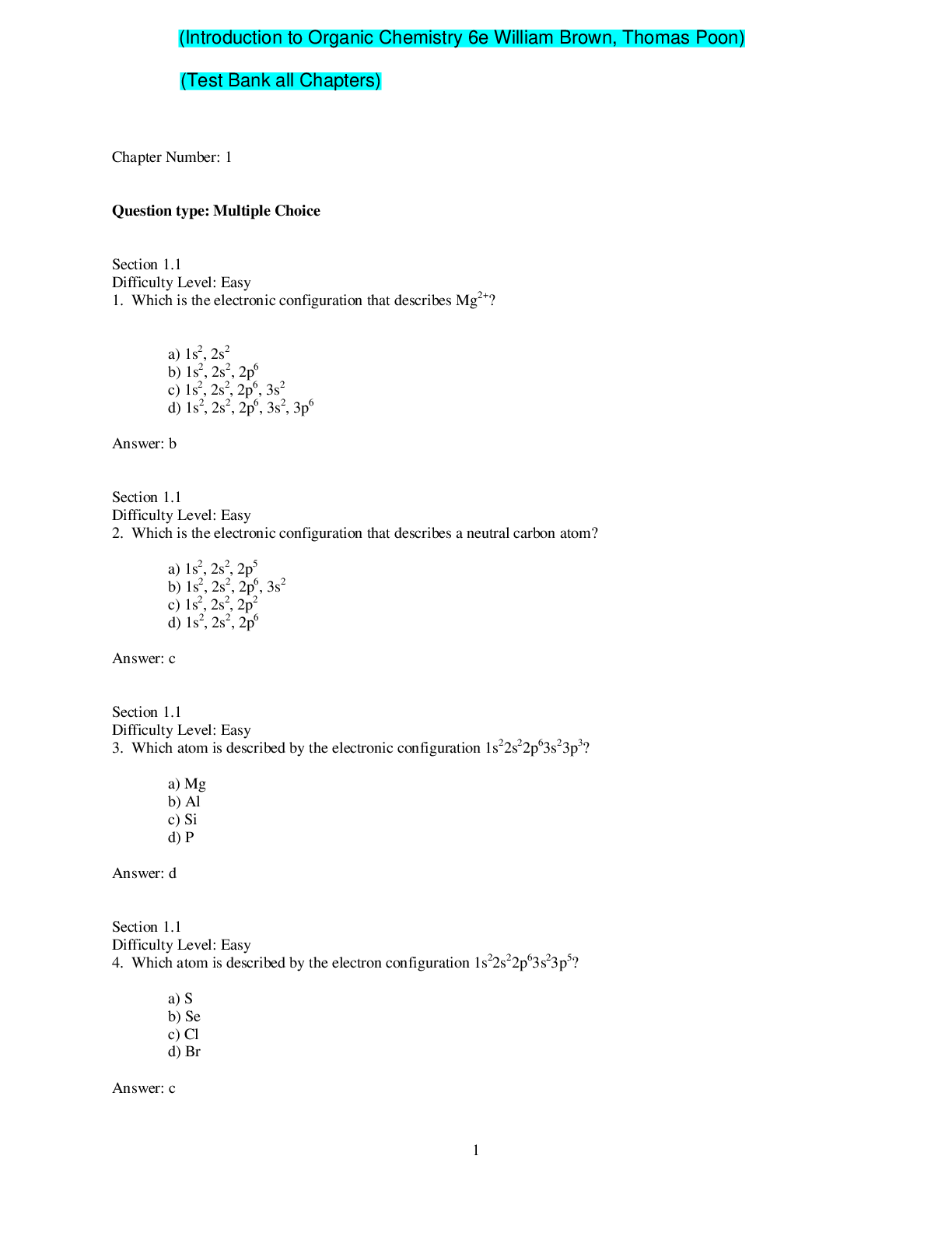 Organic Chemistry > TEST BANKS > Introduction to Organic Chemistry 6th Edition By William Brown, Thomas Poon (Test Bank) (All)