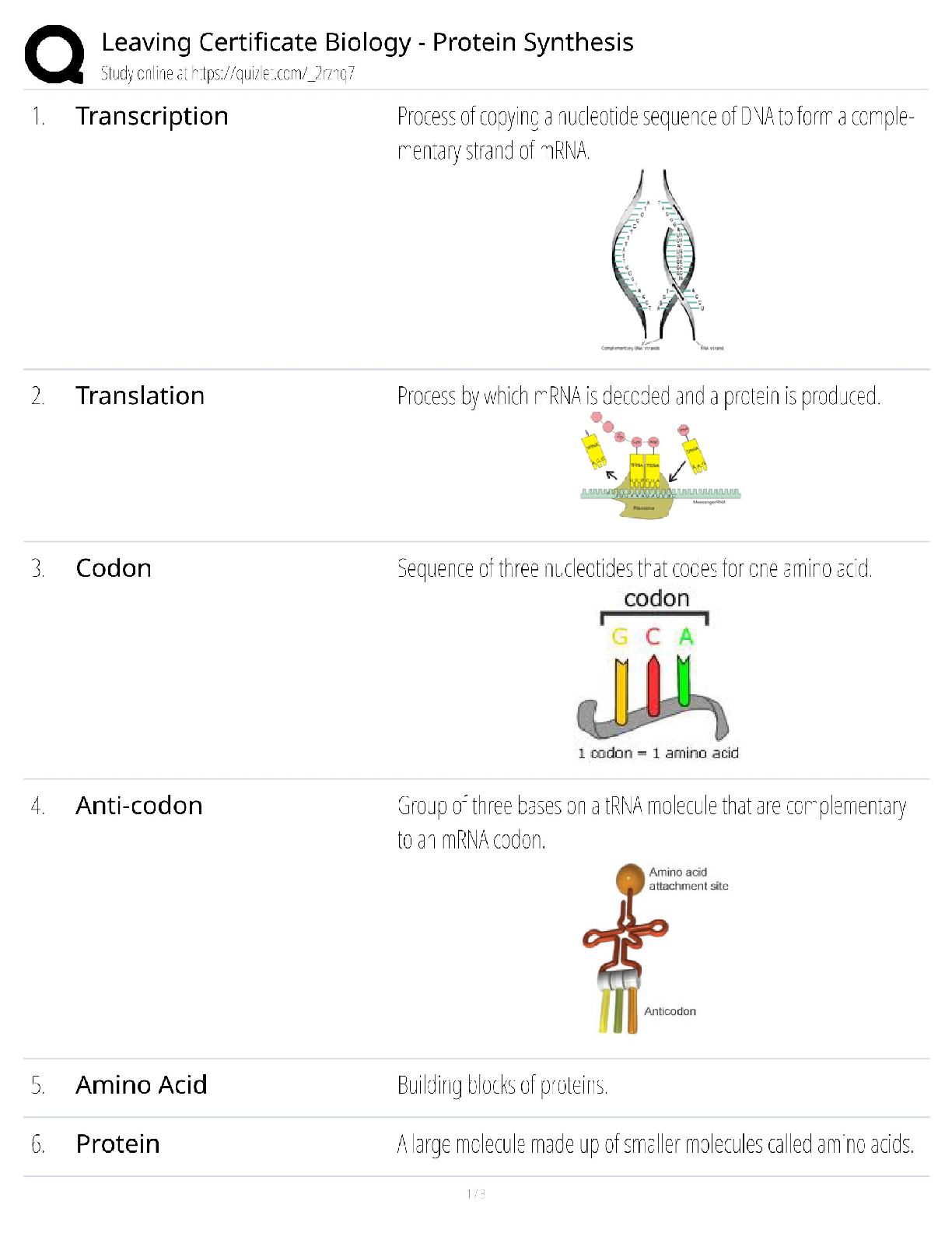 BIOLOGY 1100 > QUESTIONS & ANSWERS > Leaving Certificate Biology - Protein Synthesis / Exam Guide & Test Bank / 2025 Update / Score 100% (All)