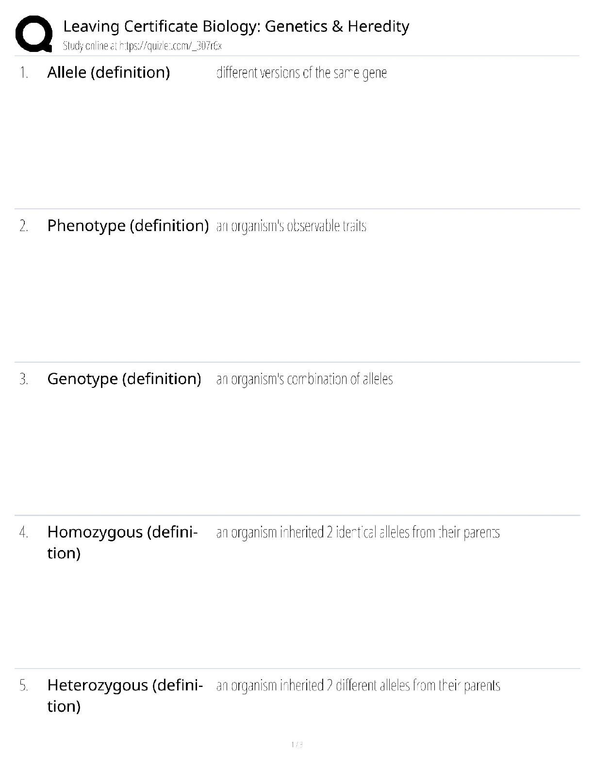 BIOLOGY 1100 > QUESTIONS & ANSWERS > Leaving Certificate Biology Genetics & Heredity / 2025 Exam Prep / Score 100% Study Guide & Flashcards (All)