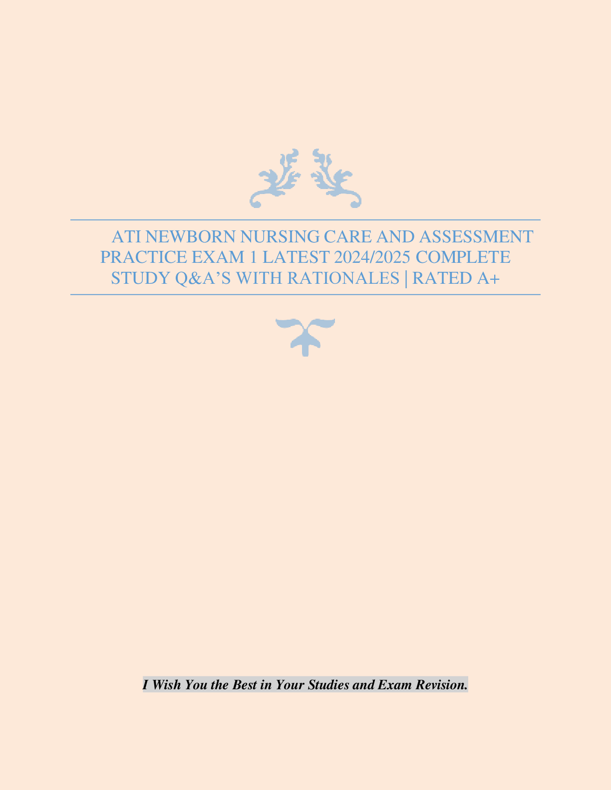 VATI RN Maternal Newborn Assessment > EXAMs > ATI NEWBORN NURSING CARE AND ASSESSMENT PRACTICE EXAM 1 LATEST 2024/2025 COMPLETE STUDY Q&A’S WITH RATIONALES | RATED A+ (All)