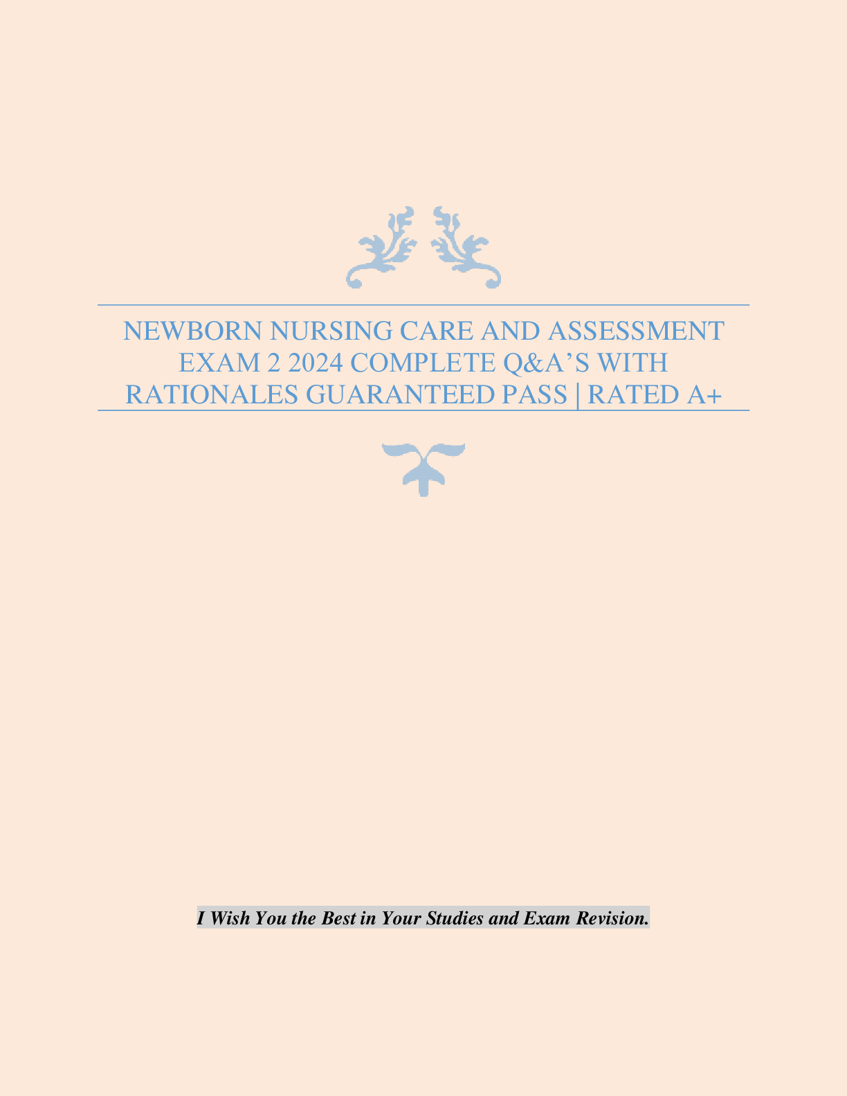 VATI RN Maternal Newborn Assessment > EXAMs > NEWBORN NURSING CARE AND ASSESSMENT EXAM 2 2024 COMPLETE Q&A’S WITH RATIONALES GUARANTEED PASS | RATED A+ (All)