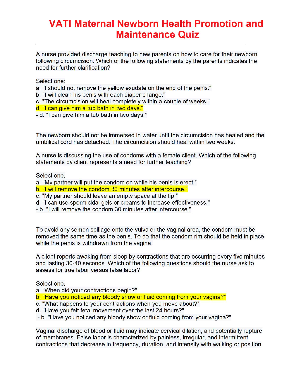 VATI RN Maternal Newborn Assessment > Quiz > 📄 VATI Maternal Newborn Health Promotion and Maintenance Quiz (All)