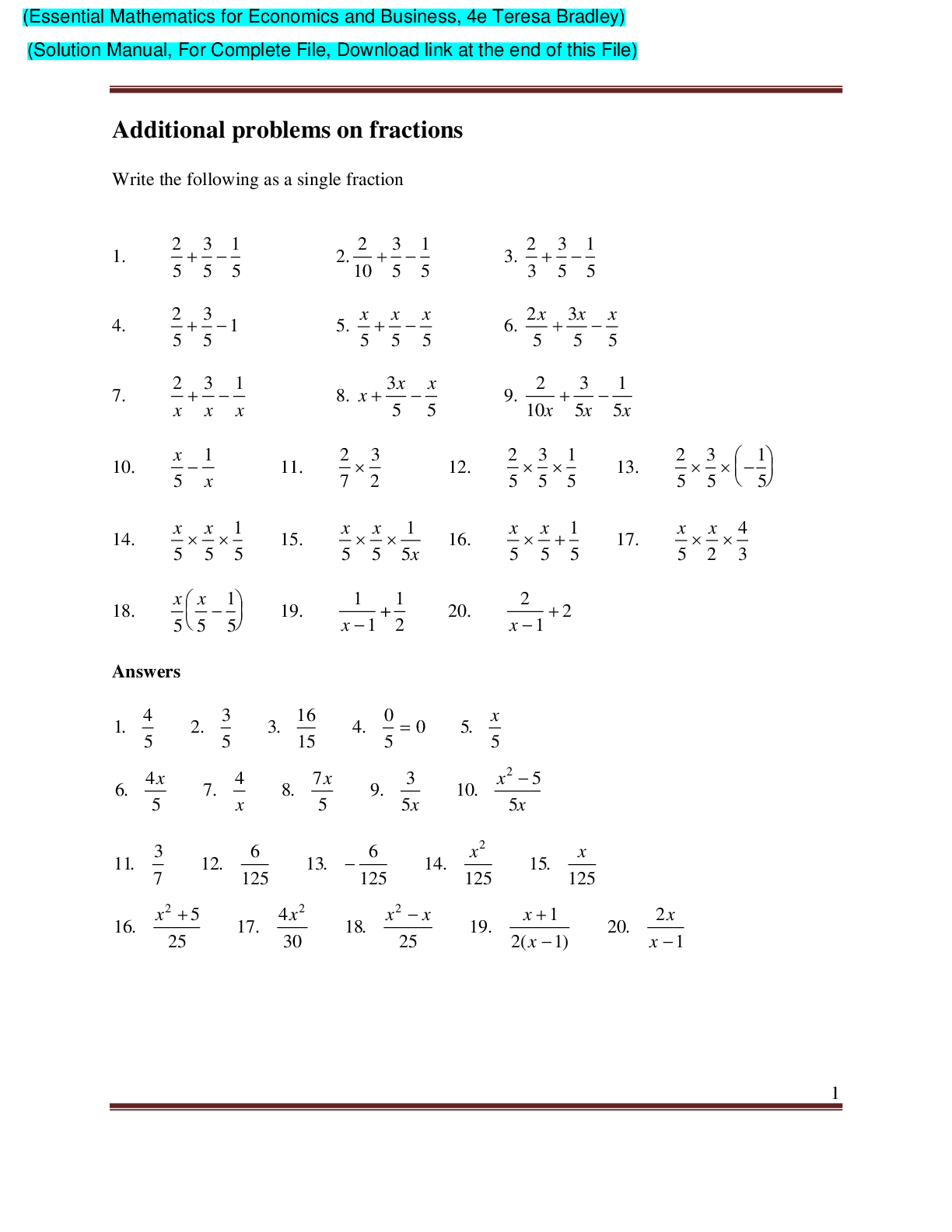 Mathematics > SOLUTIONS MANUAL > Solution Manual for Essential Mathematics for Economics and Business, 4th Edition by Teresa Bradley (All)