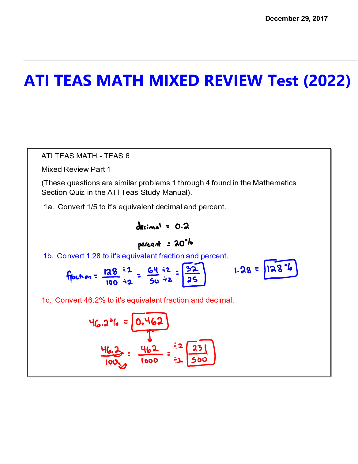 Mathematics > Final Exam Review > ATI TEAS MATH MIXED REVIEW Test (2022) (All)