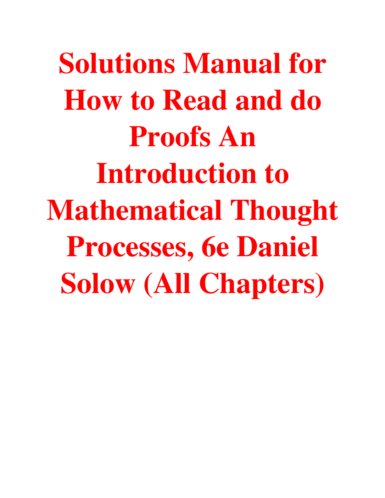 Mathematics > SOLUTIONS MANUAL > How to Read and do Proofs An Introduction to Mathematical Thought Processes, 6e Daniel Solow (Solutions Manual) (All)