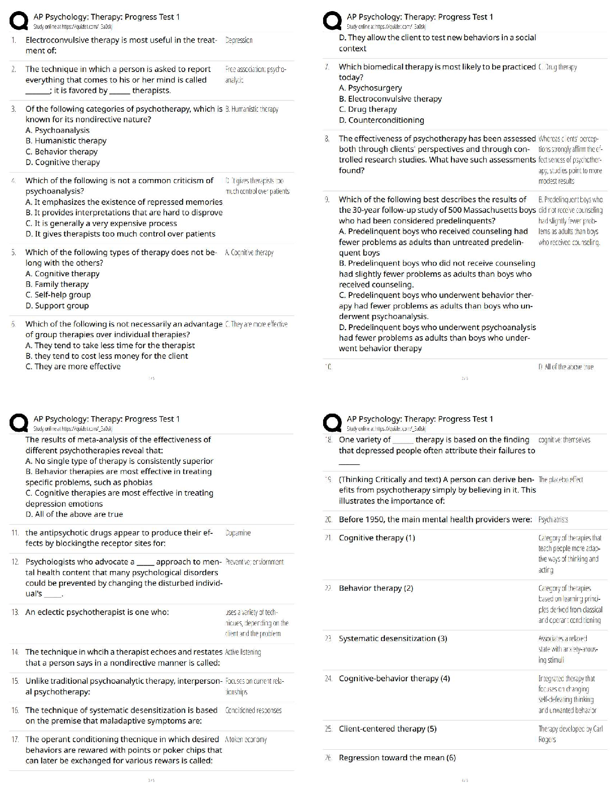 Social Psychology > QUESTIONS & ANSWERS > AP Psychology Therapy Progress Test / Score 100% / New Version / 2025 Update / Complete Study Guide (All)
