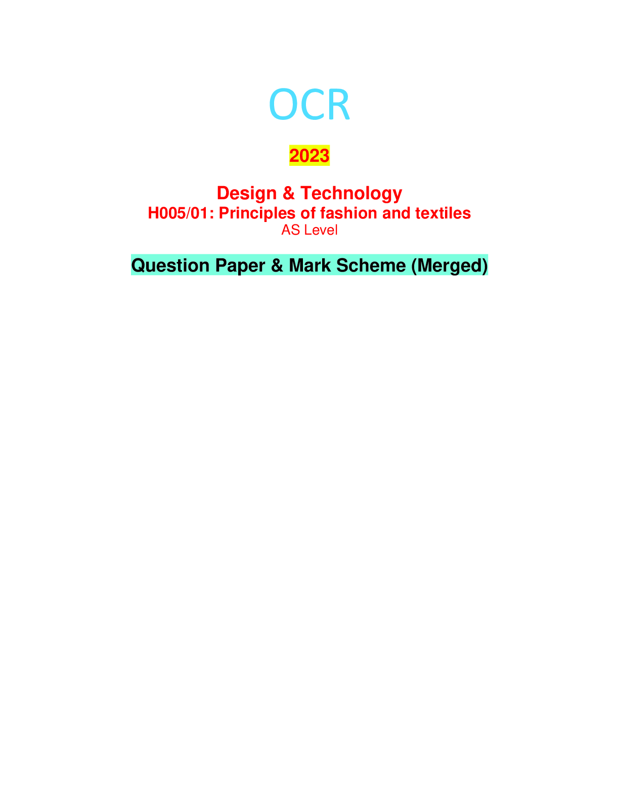 OCR > EXAM > OCR 2023 Design & Technology H005/01: Principles of fashion and textiles AS Level Question Paper & Mark Scheme (Merged) (All)