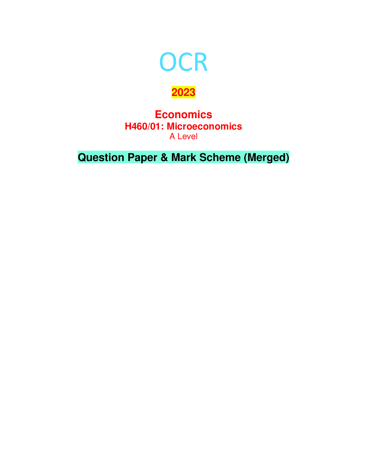 OCR > EXAM > 2023 Economics H460/01: Microeconomics A Level Question Paper & Mark Scheme (Merged) (All)
