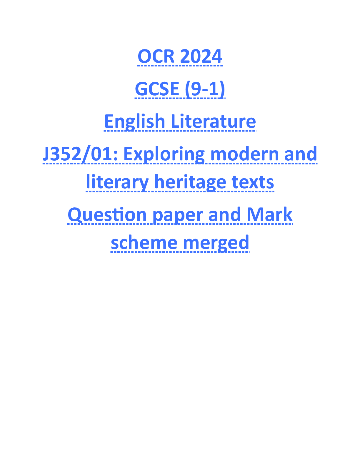 OCR > GCSE QUESTION PAPER > OCR 2024 GCSE (9-1) English Literature J352/01: Exploring modern and literary heritage texts Question paper and Mark scheme merged (All)