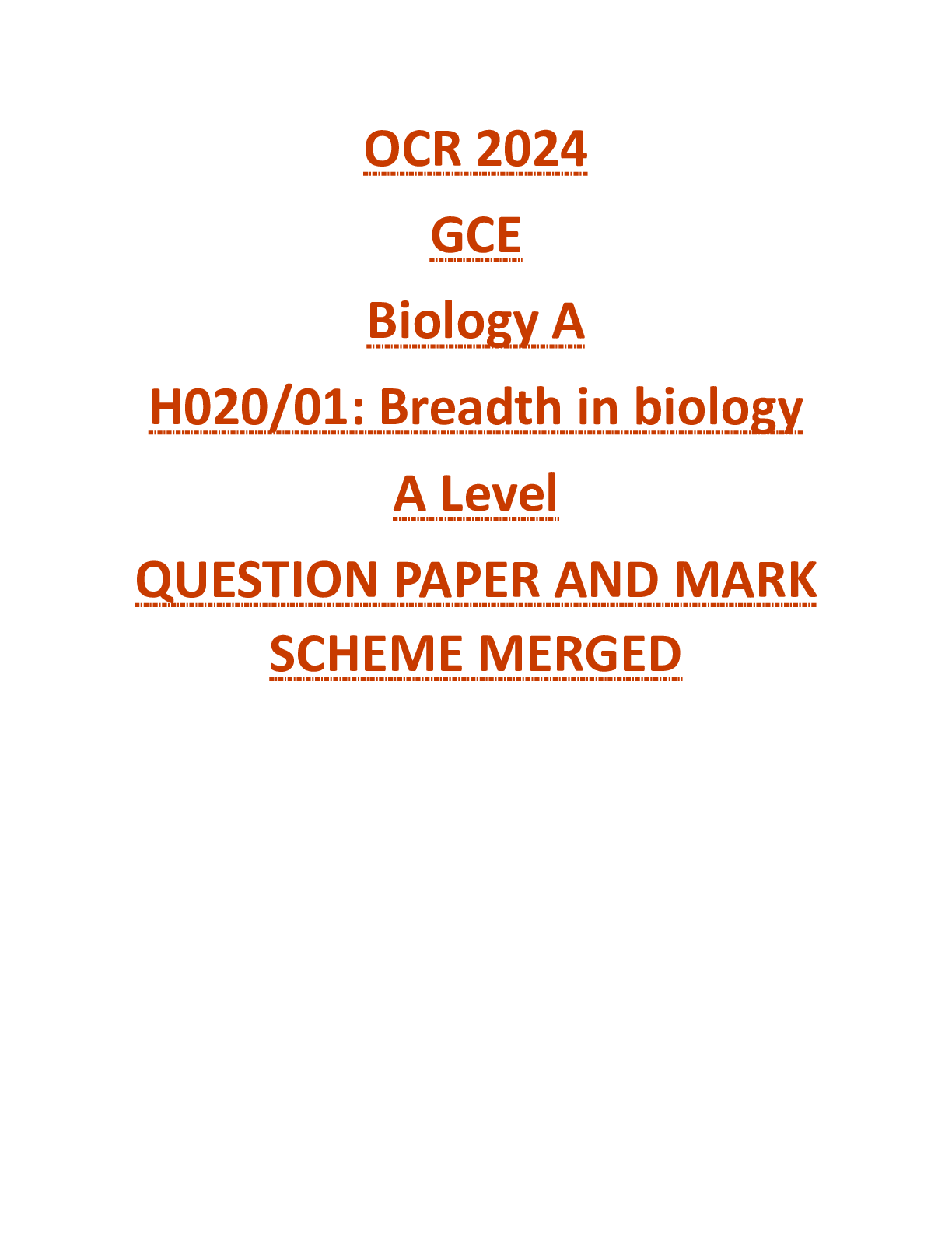 OCR > A-Level Question Paper > OCR 2024 GCE Biology A H020/01: Breadth in biology A Level QUESTION PAPER AND MARK SCHEME MERGED (All)
