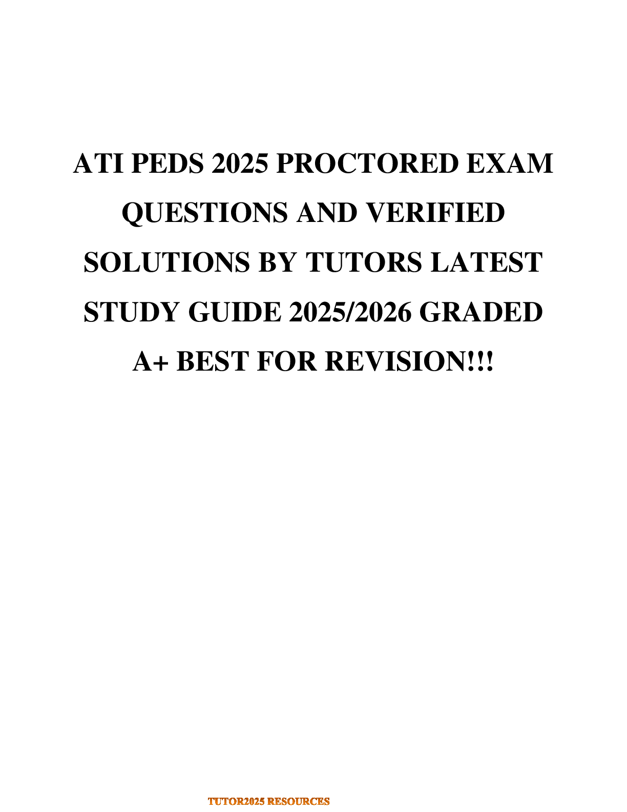 ATI Proctored Exam Maternal Newborn > EXAMs > ATI PEDS 2025 PROCTORED EXAM QUESTIONS AND VERIFIED SOLUTIONS BY TUTORS LATEST STUDY GUIDE 2025/2026 GRADED A+ BEST FOR REVISION! (All)