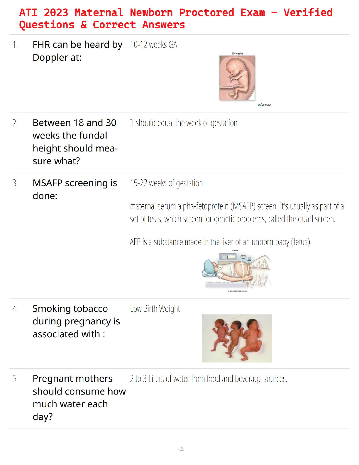ATI Proctored Exam Maternal Newborn > QUESTIONS & ANSWERS > ATI 2023 Maternal Newborn Proctored Exam – Verified Questions & Correct Answers (All)