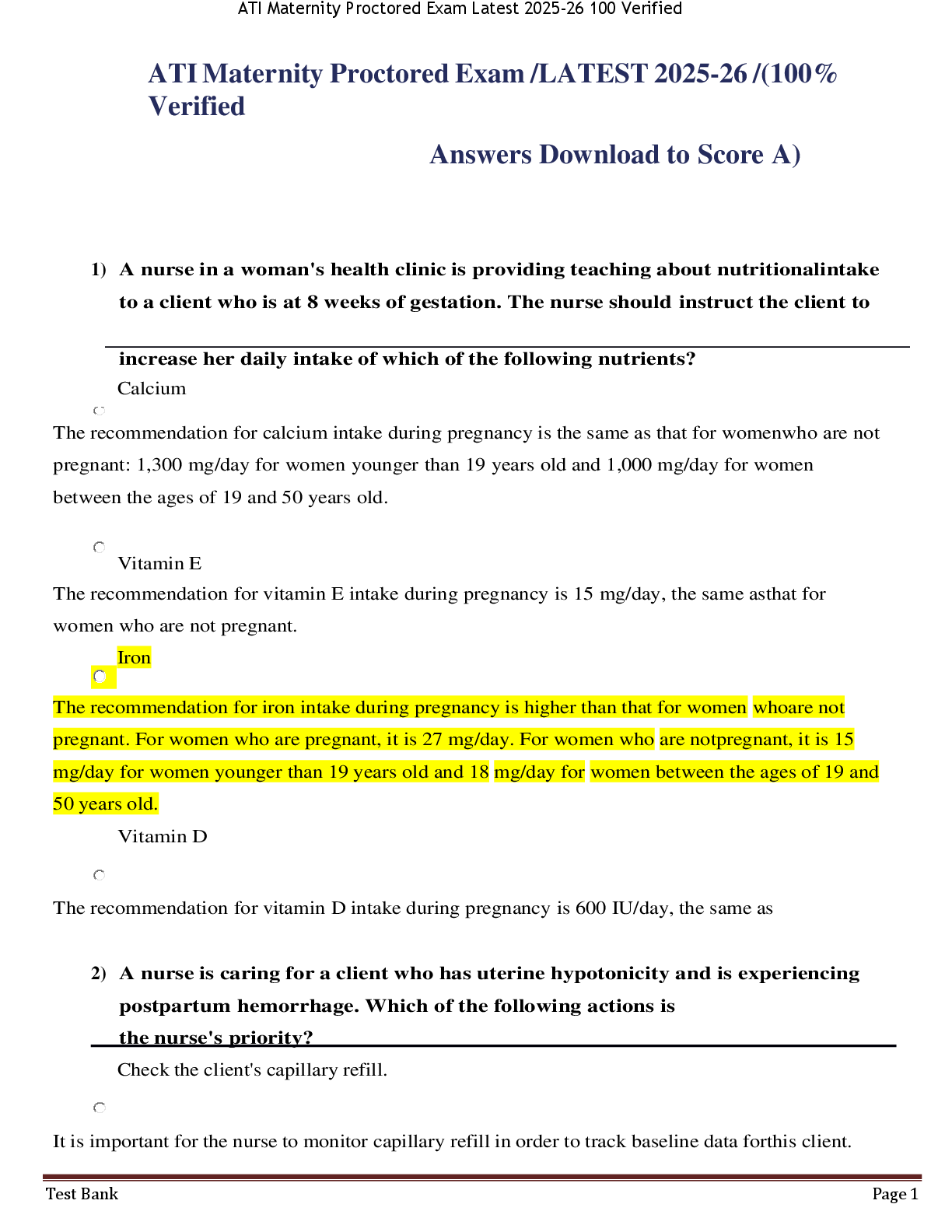 ATI Proctored Exam Maternal Newborn > QUESTIONS & ANSWERS > ATI Maternity Proctored Exam /LATEST 2025-26 /(100% Verified (All)