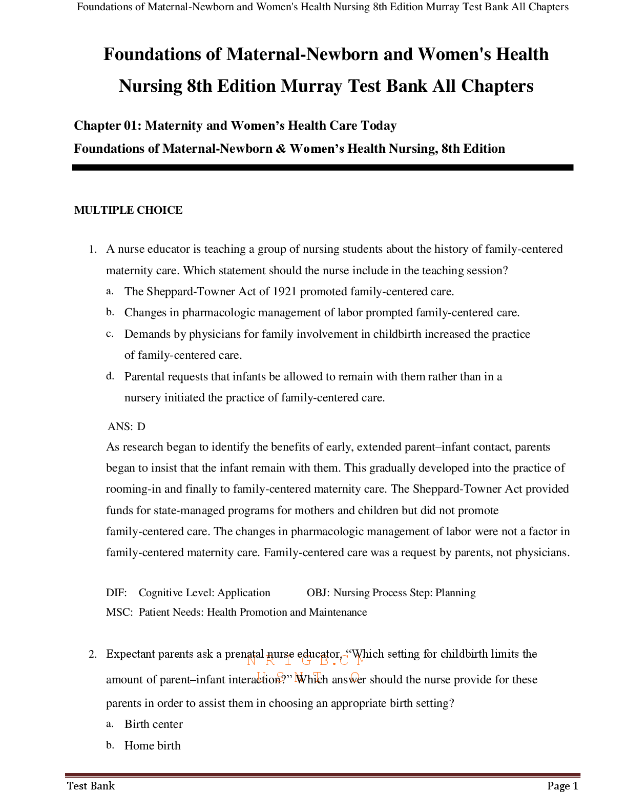 ATI RN MATERNAL NEWBORN PROCTORED > TEST BANKS > Test Bank Foundations of Maternal-Newborn and Women's Health Nursing 8th Edition Murray All Chapters (All)