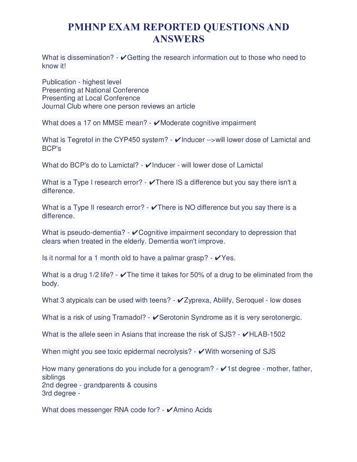 nurse > EXAM > PMHNP EXAM REPORTED QUESTIONS AND ANSWERS 2023 (All)