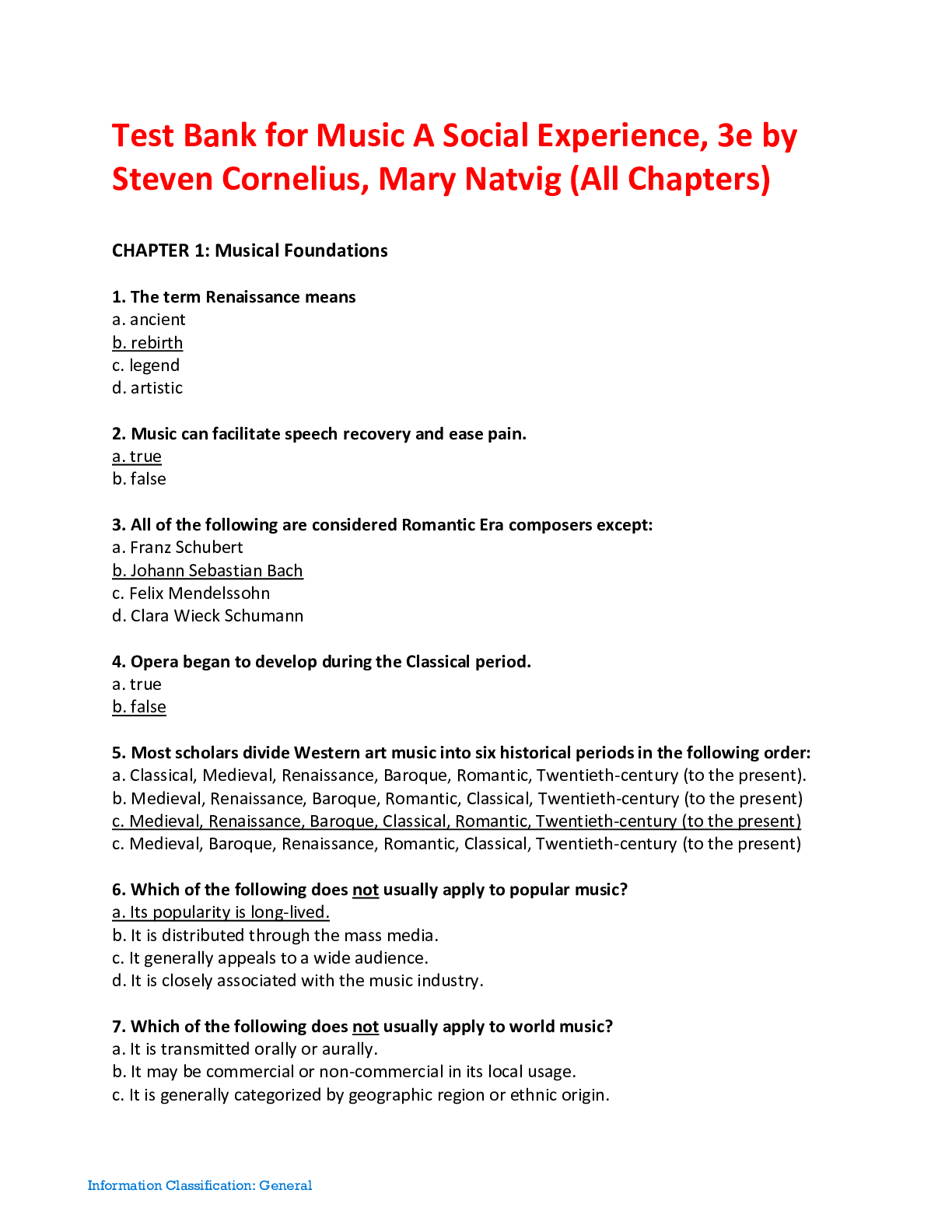 Music > TEST BANKS > Music A Social Experience, 3rd Edition by Steven Cornelius, Mary Natvig (Test Bank) (All)