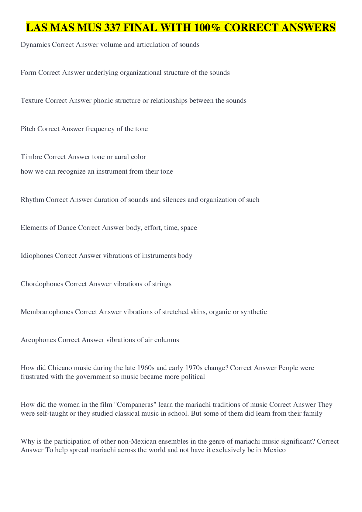 Music > QUESTIONS & ANSWERS > LAS MAS MUS 337 FINAL WITH 100% CORRECT ANSWERS (All)