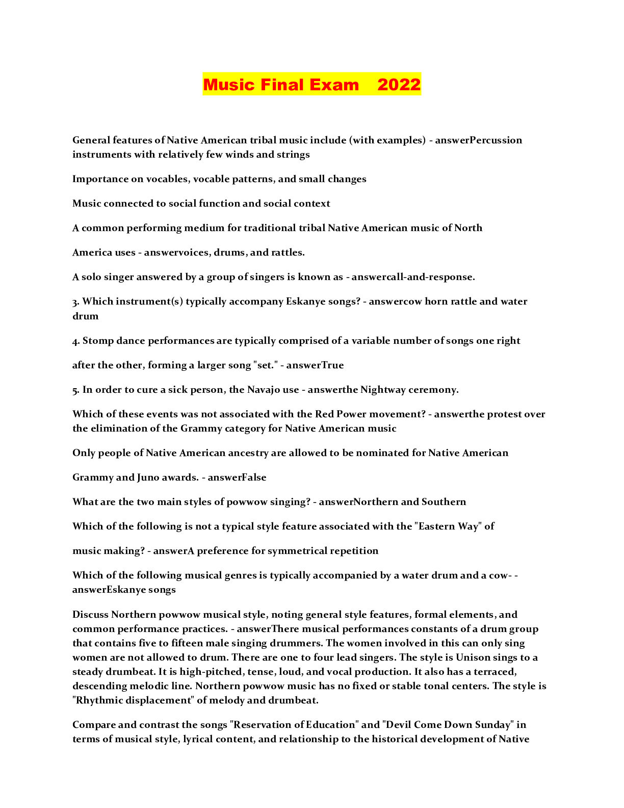 Music > QUESTIONS & ANSWERS > Music Final Exam 2022 (All)