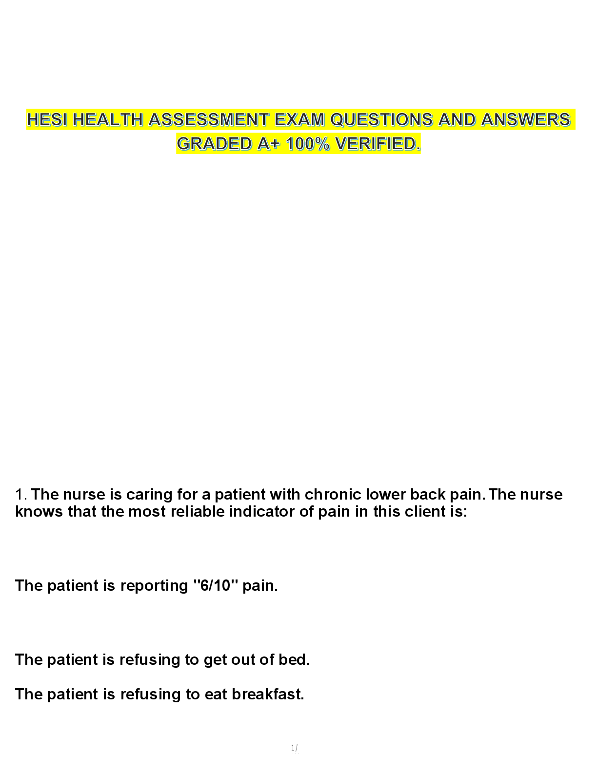 HESI > EXAM > HESI Health Assessment Exam: Questions and Answers – Graded A+ | 100% Verified (All)