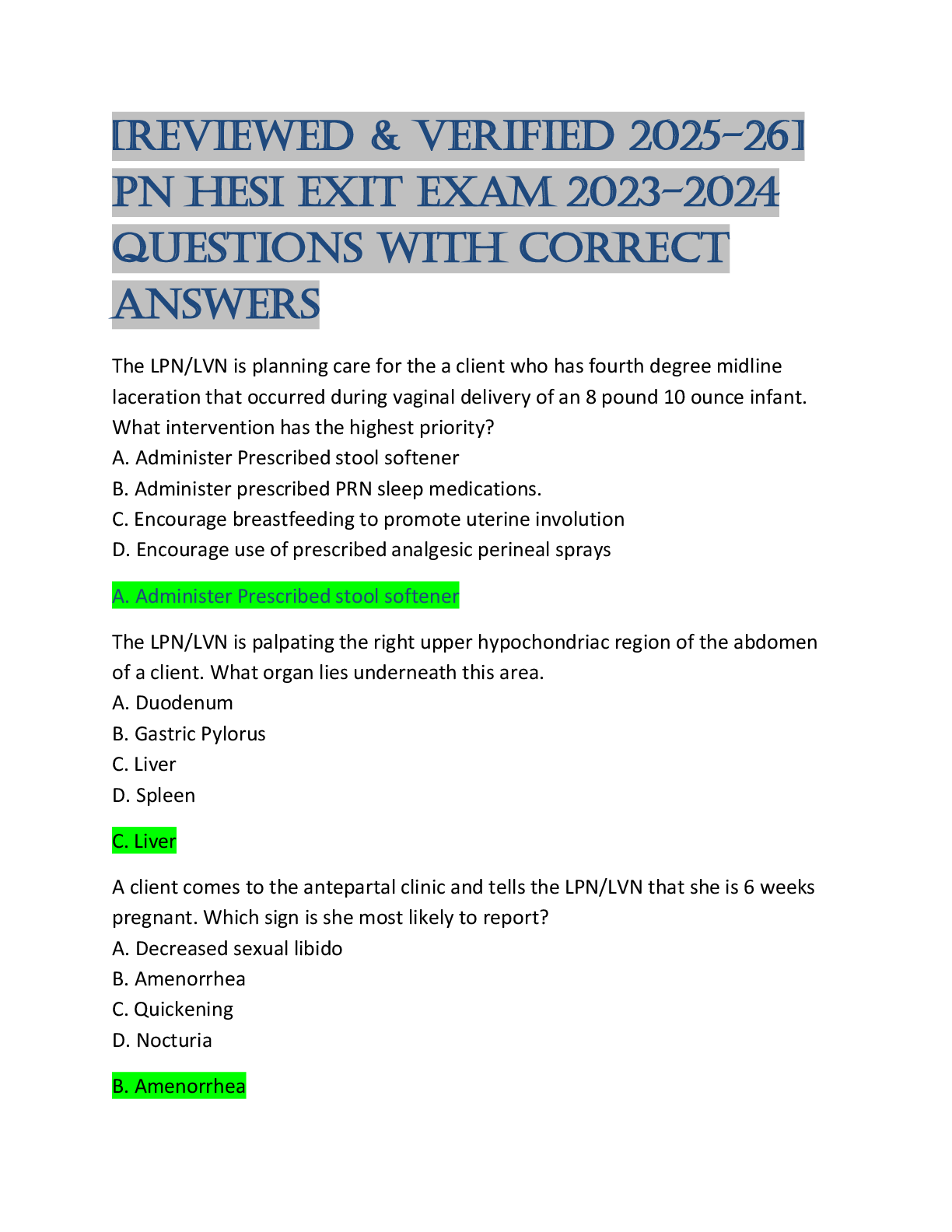 HESI > EXAM > [REVIEWED & VERIFIED 2025-26] PN HESI EXIT EXAM 2023-2024 QUESTIONS WITH CORRECT ANSWERS (All)