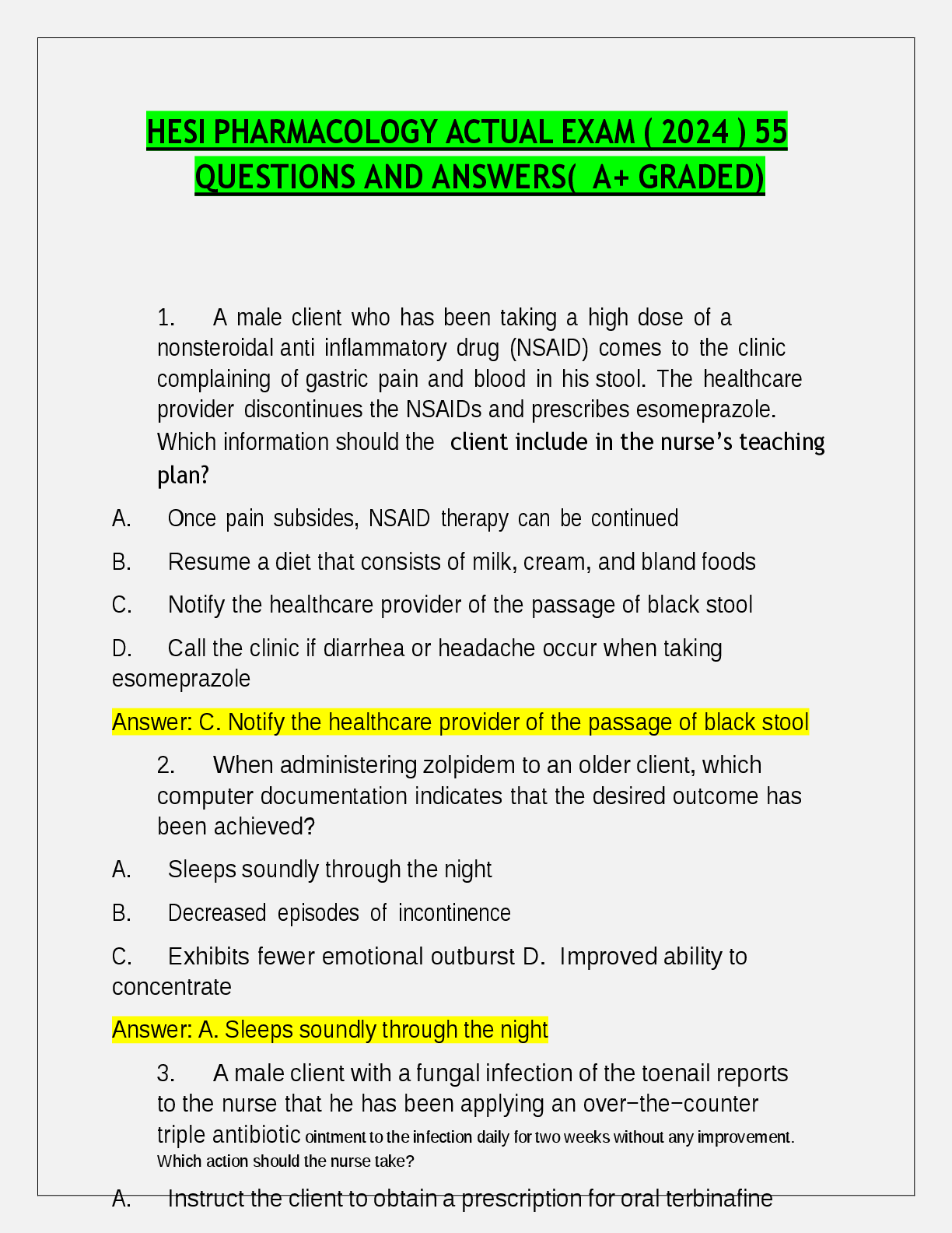 HESI > EXAM > HESI PHARMACOLOGY ACTUAL EXAM QUESTIONS 2024 55 QUESTIONS & ANSWERS! 100% CORRECT ANSWERS (All)