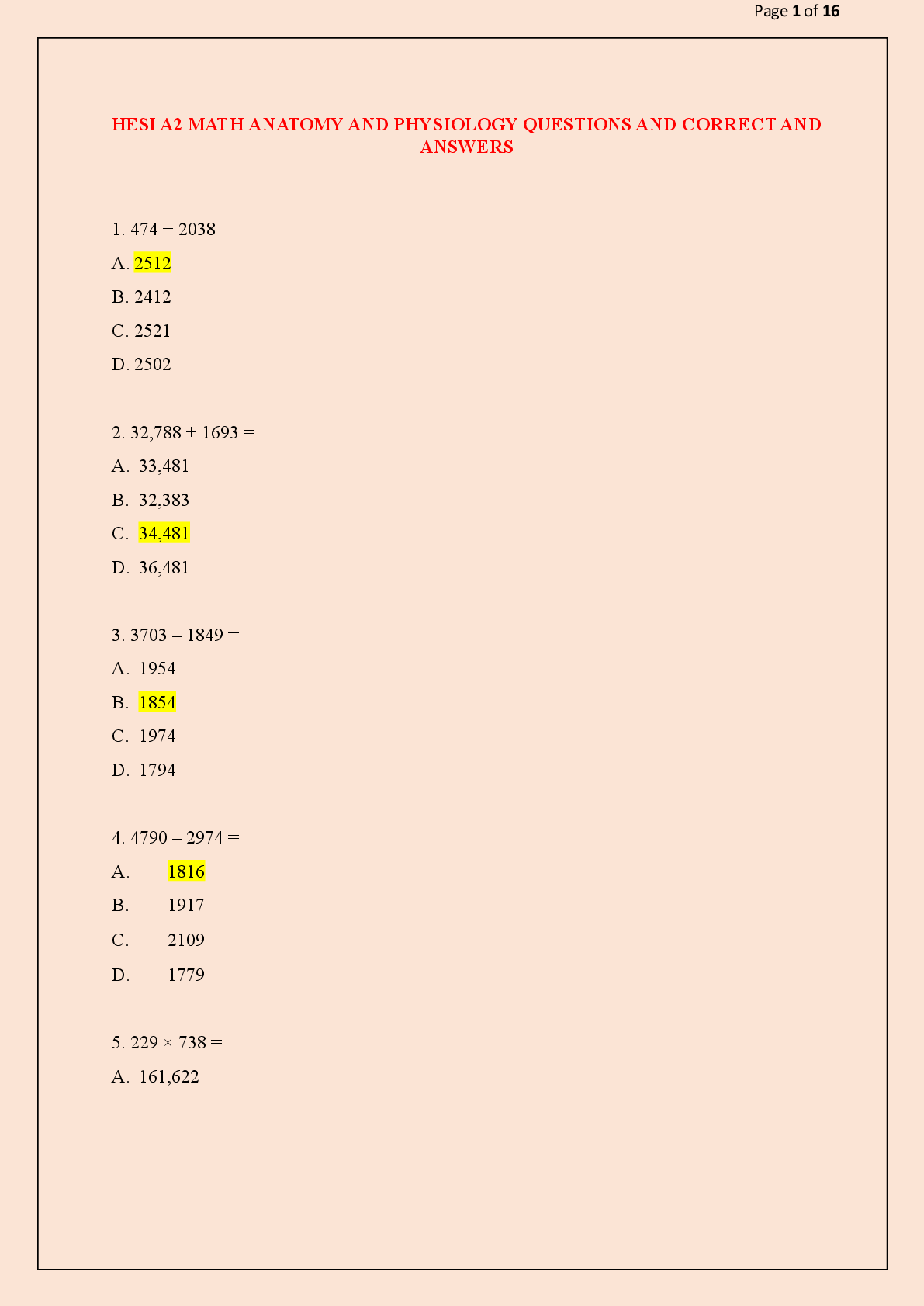 HESI > EXAM > HESI A2 MATH ANATOMY AND PHYSIOLOGY QUESTIONS AND CORRECT AND ANSWERS (All)