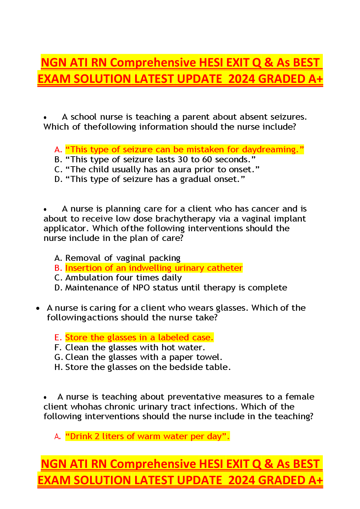 HESI > EXAM > NGN ATI RN Comprehensive HESI EXITQ&AsBESTEXAM SOLUTION LATEST UPDATE 2024GRADEDA+ (All)