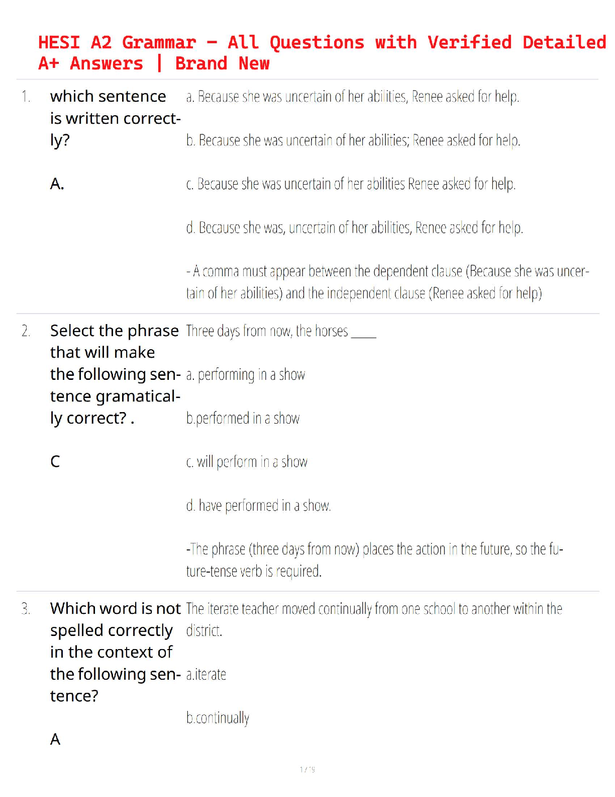 HESI > STUDY GUIDE > HESI A2 Grammar – All Questions with Verified Detailed A+ Answers | Brand New (All)