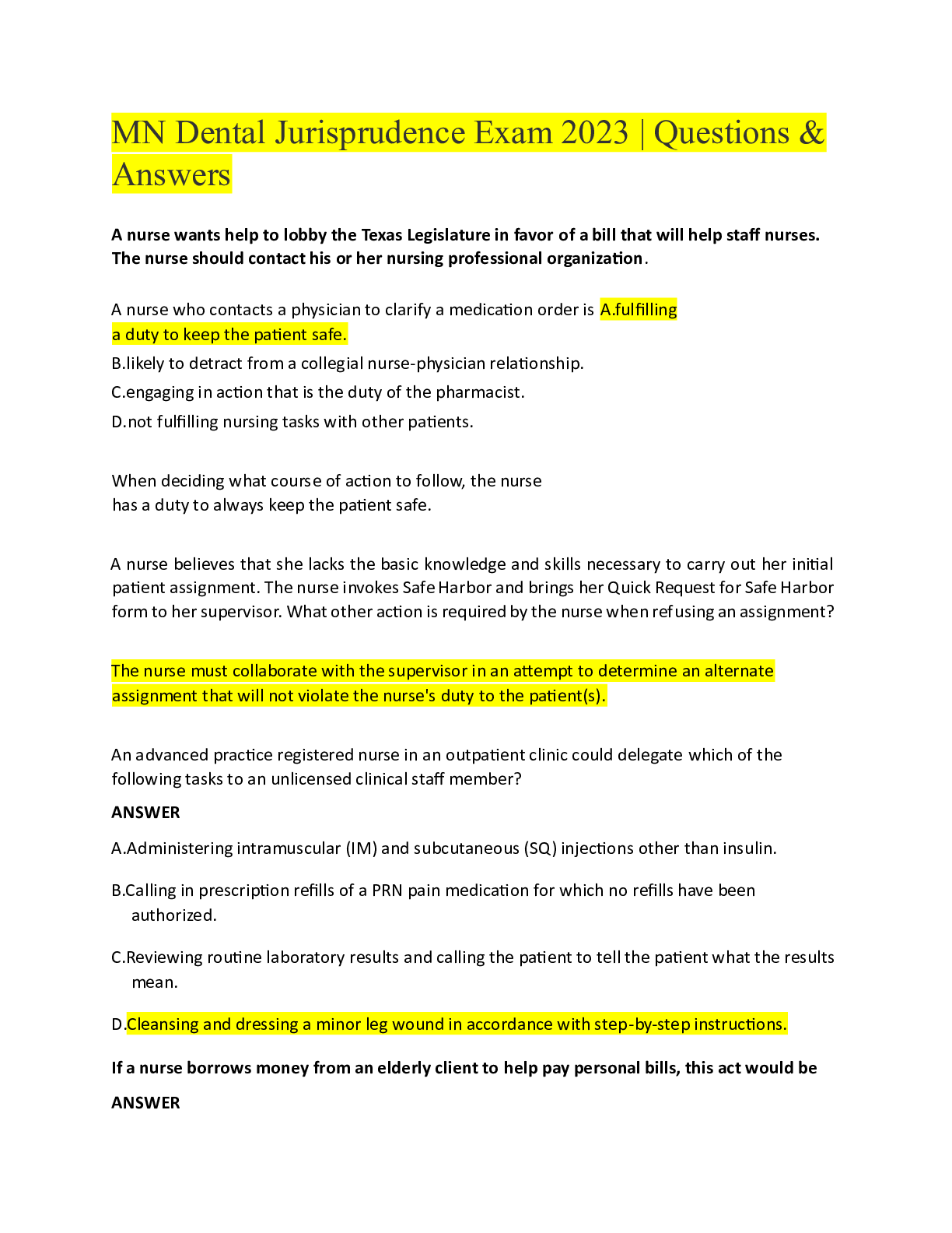 HESI > QUESTIONS and ANSWERS > HESI PN MN Dental Jurisprudence Exam 2023 _ Questions & Answers (All)
