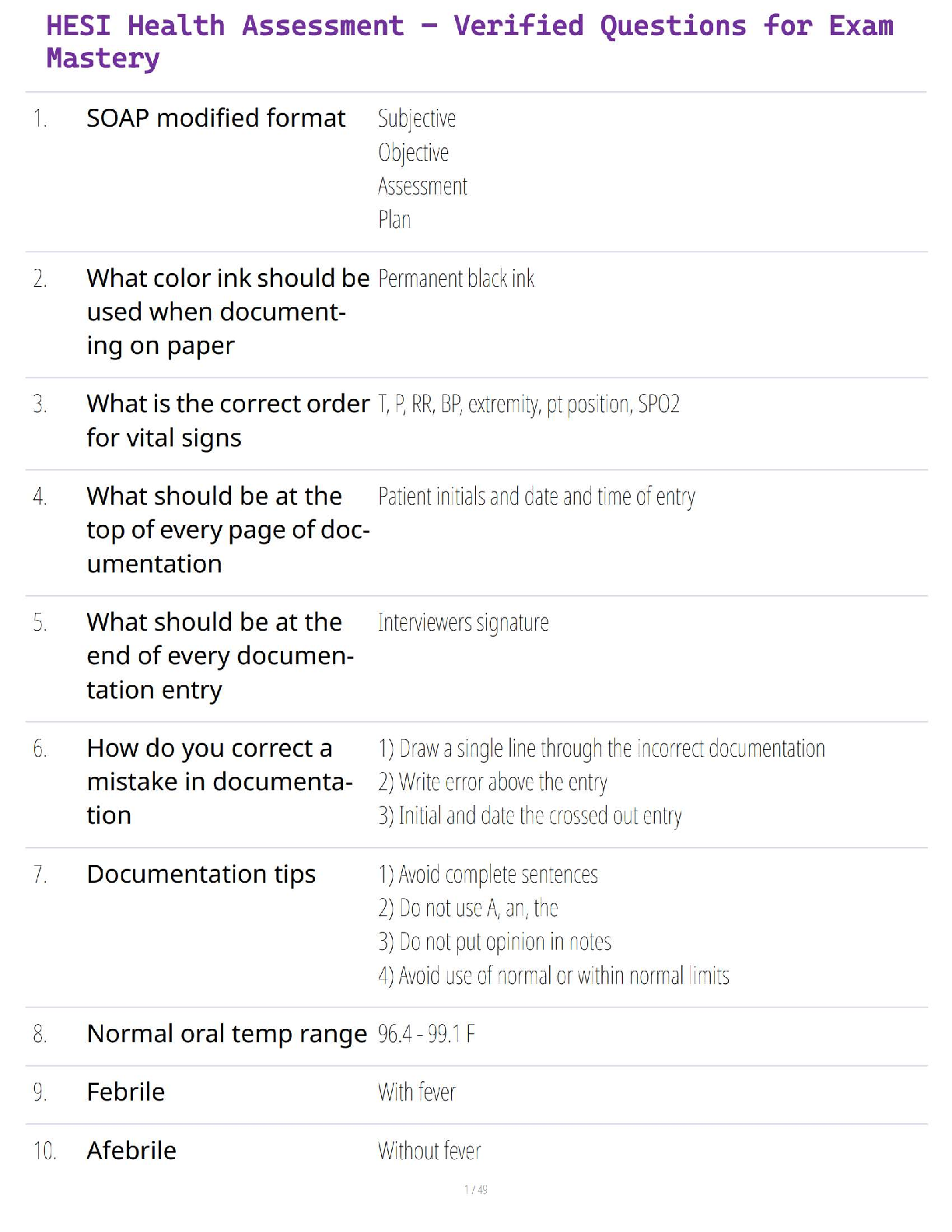 HESI > QUESTIONS & ANSWERS > HESI Health Assessment – Verified Questions for Exam Mastery (All)