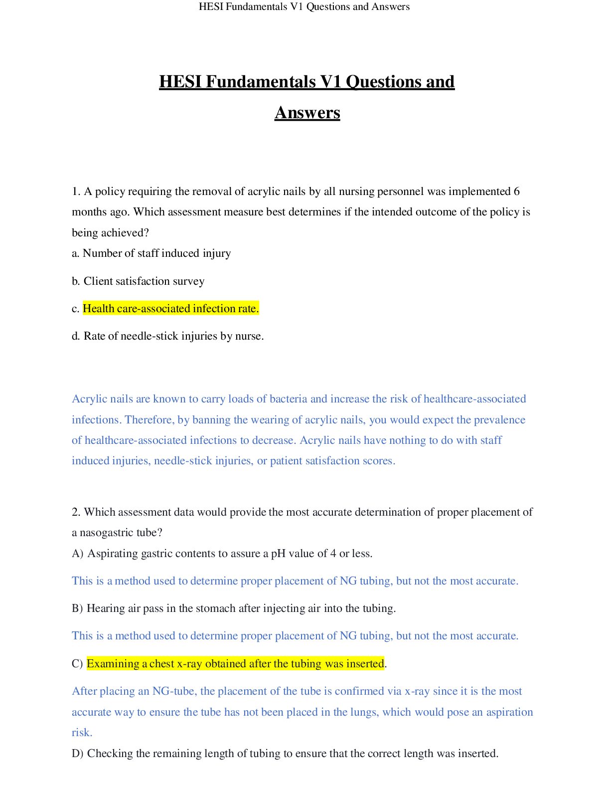 HESI > QUESTIONS & ANSWERS > BEST Hesi a2 version 1 and 2 questions and answers already graded A (All)