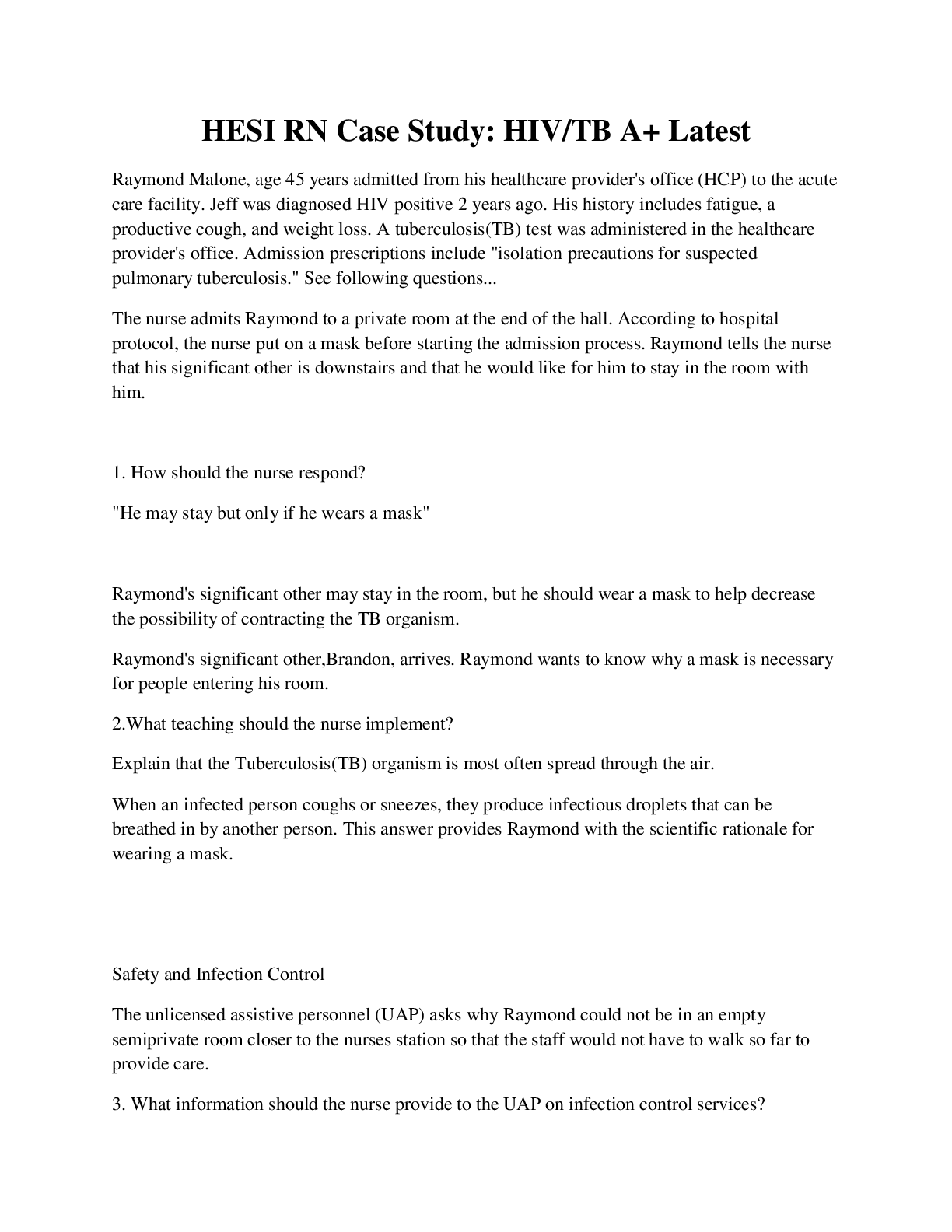 HESI > CASE STUDY > HESI RN Case Study: HIV/TB A+ Latest (All)