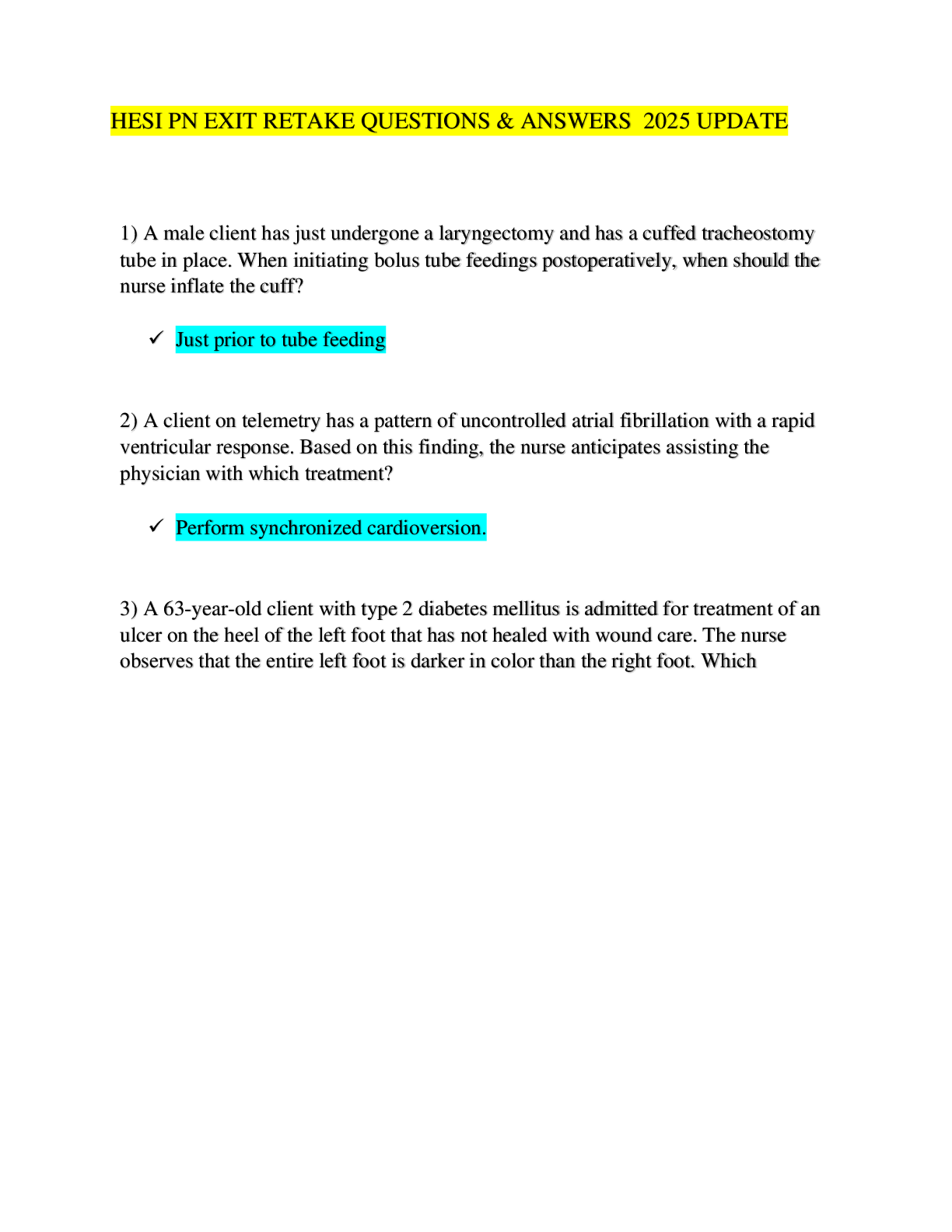 HESI > EXAM > Med-Surg HESI Test Questions 2022/2023 and All Answers Verified Correct A+ (All)