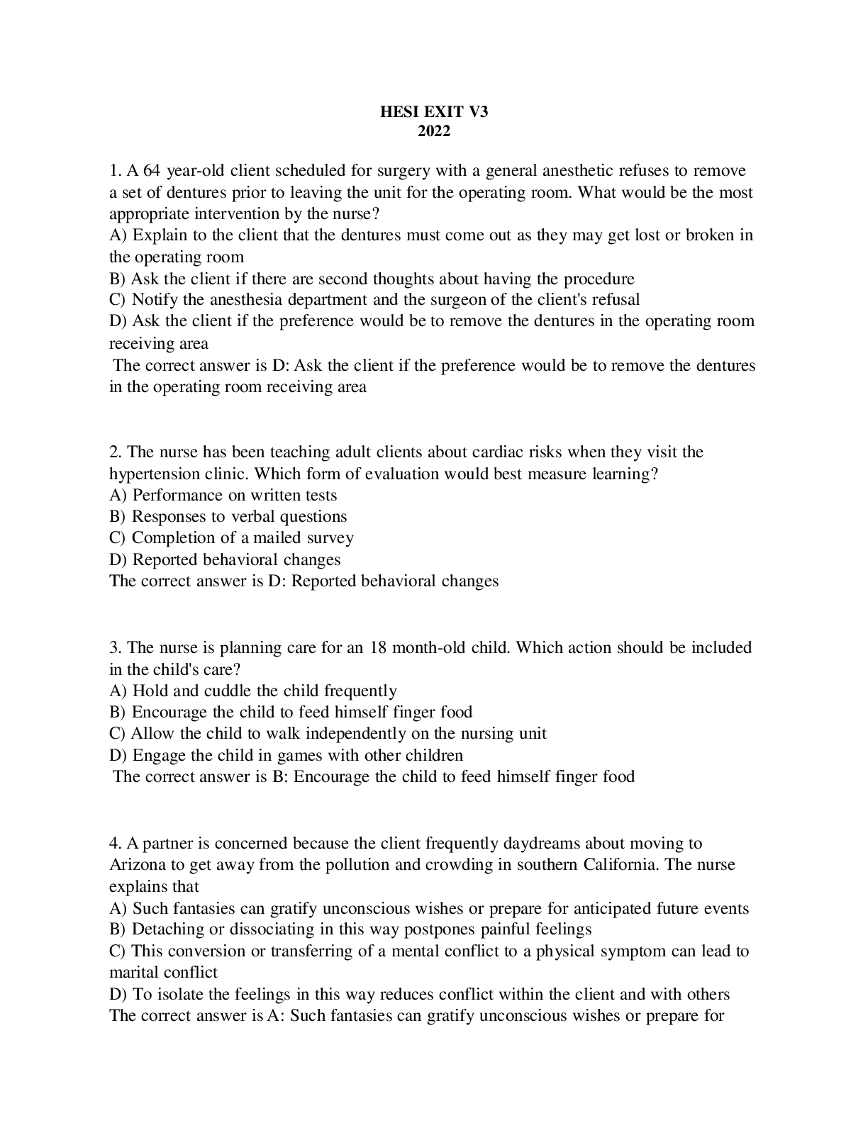 PEDIATRIC (PEDS) HESI EXIT VERSION 1-7 > A-Level Question Paper > HESI RN EXIT V3 2022 (All)