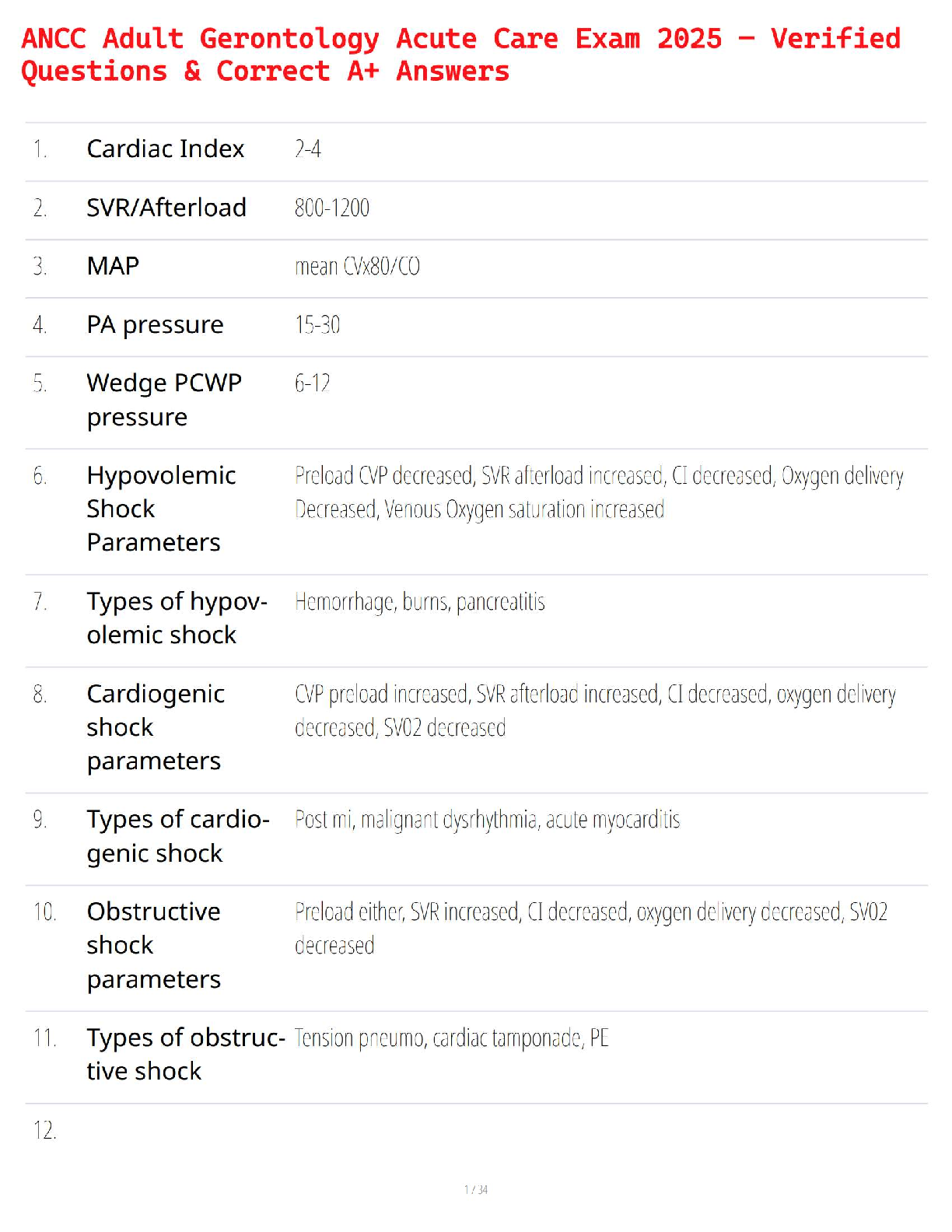 ANCC > QUESTIONS & ANSWERS > ANCC Adult Gerontology Acute Care Exam 2025 – Verified Questions & Correct A+ Answers (All)