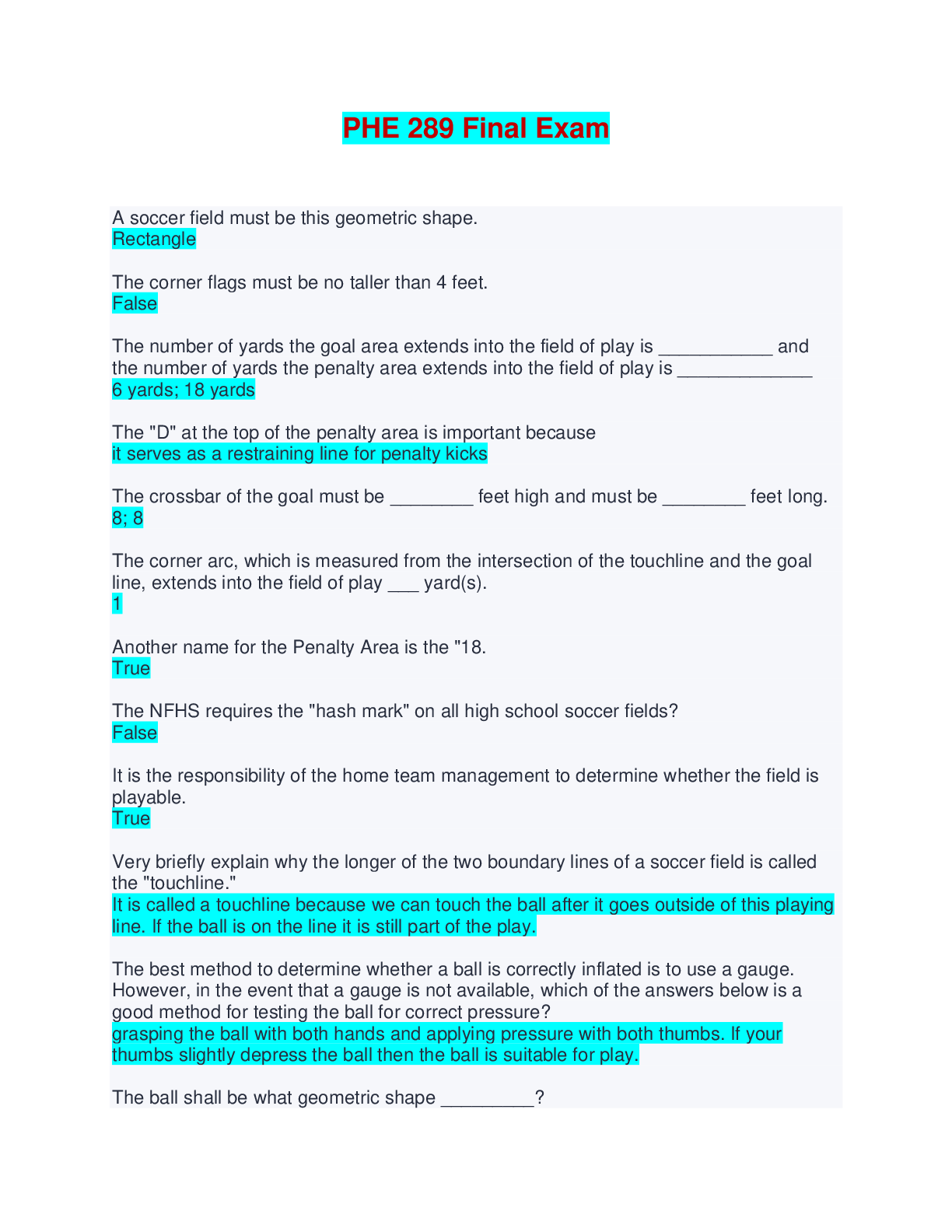Performing Arts > EXAM > PHE 289 Final Exam | Verified with 100% Correct Answers (All)