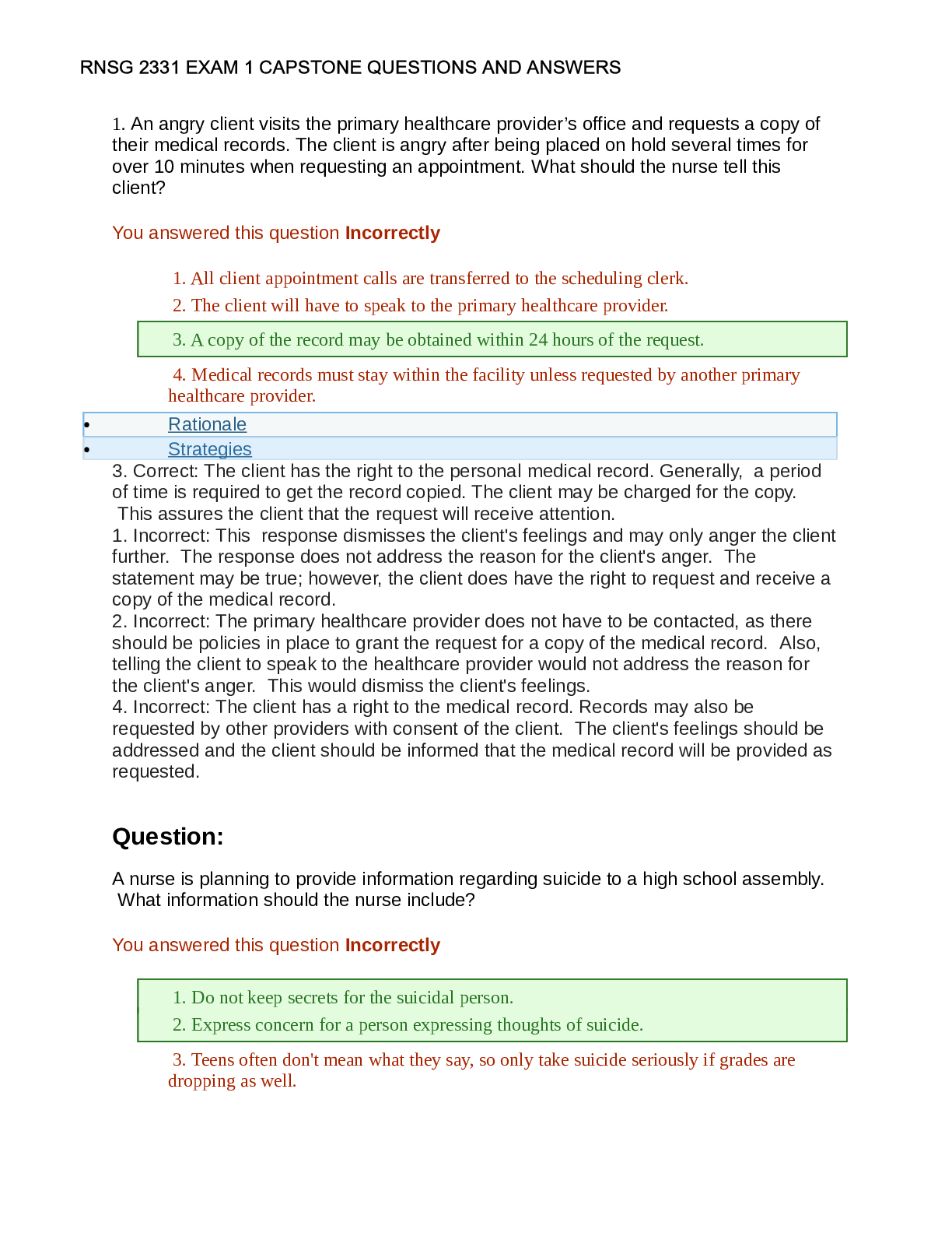 nursing informatics and technology > EXAM > RNSG 2331 EXAM 1 CAPSTONE QUESTIONS AND ANSWERS (All)