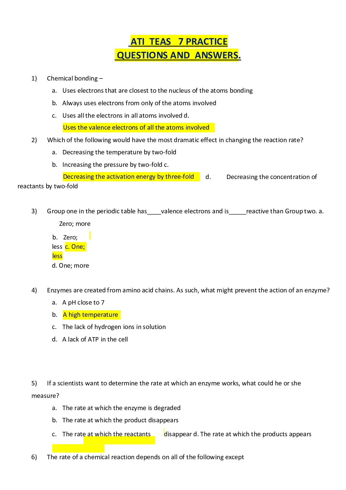 nursing informatics and technology > EXAM > ATI TEAS 7 PRACTICE QUESTIONS AND ANSWERS (All)