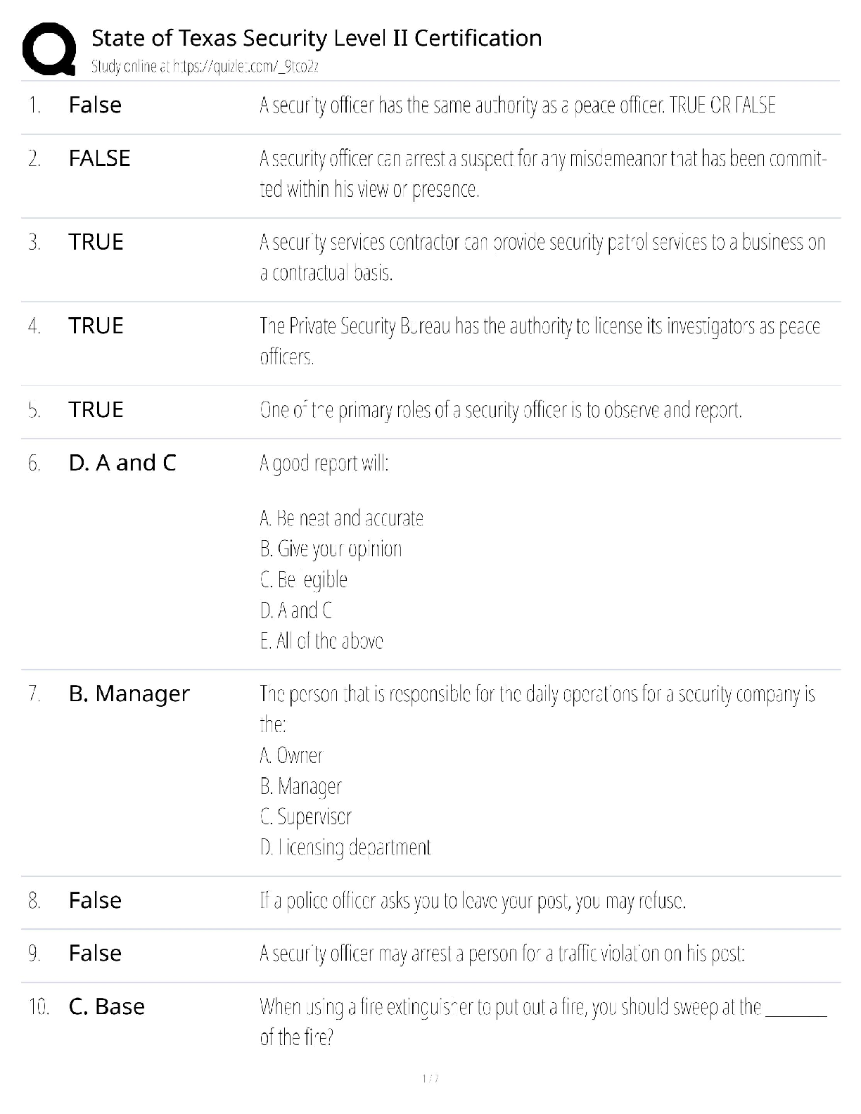 SECURITY > QUESTIONS & ANSWERS > Texas Security Level II Certification / 2024 Exam Prep / Unarmed & Armed Guard Training / Pass Guaranteed (All)